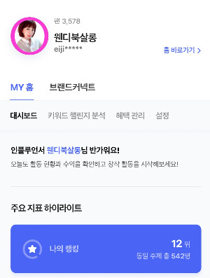 나의 새로운 목표는 도서인플루언서 순위 10위 권 진입이다.