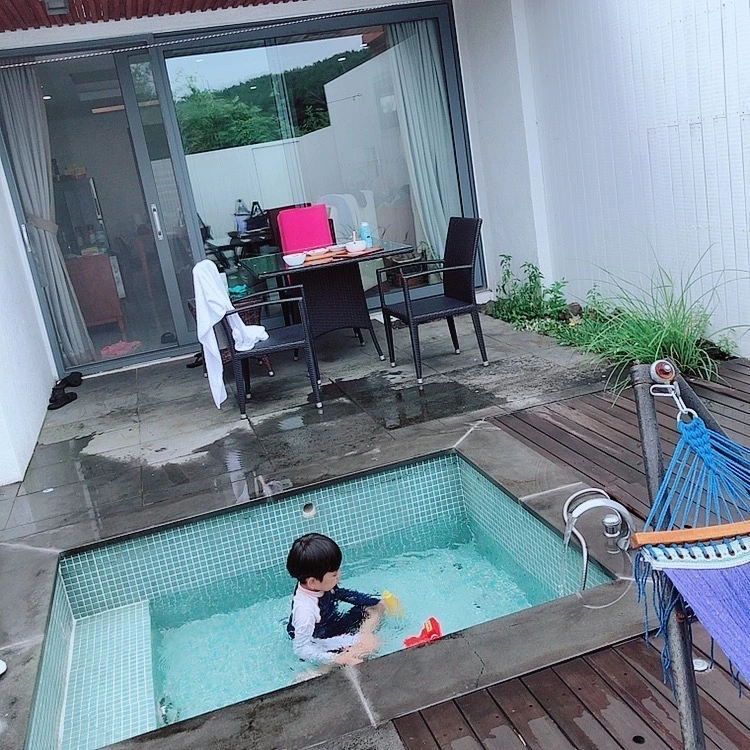 무엇보다 나를 설레게 했던 테라스와 자쿠지. 늦여름이라 태풍도 오기 전이었고, 분명 비가 자주 올 것이라는 예상에 비 오는 날 따뜻한 온수 자쿠지에서 아들과 놀 생각을 하니 정말 포기가 안됐던 요소. 내 예상대로 우린 한 달 내내 비 오는 날이면 비를 맞으며 테라스 자쿠지에서 놀았다.