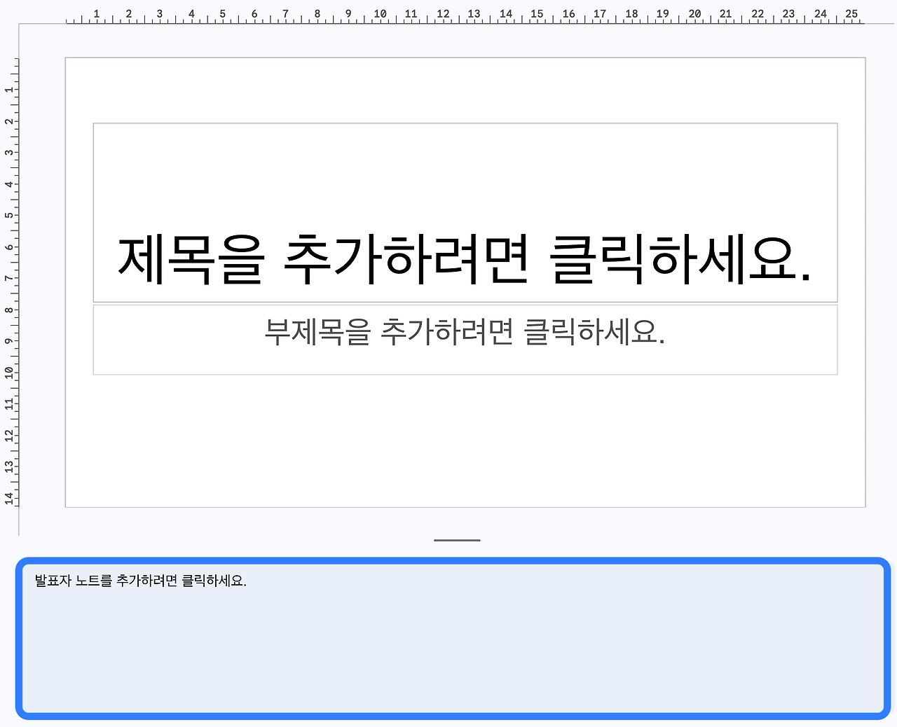 ppt의 경우 각 장표마다 밑에 노트 적는 칸(이미지 내 파란색 박스)이 있어, 이를 활용하여 각 장표마다의 스크립트를 적을 수 있다. 처음에는 스크립트를 보고 읽다가 나중에는 해당 칸을 가리고 장표만 보면서 말하는 연습을 하는 식으로 활용하자.