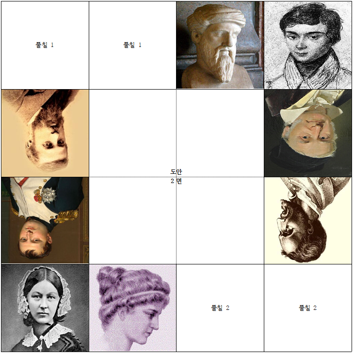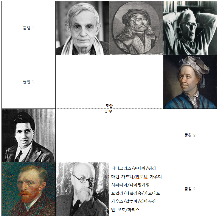 11) 상하좌우로 뒤집으면 수학자의 얼굴이 바뀐다.