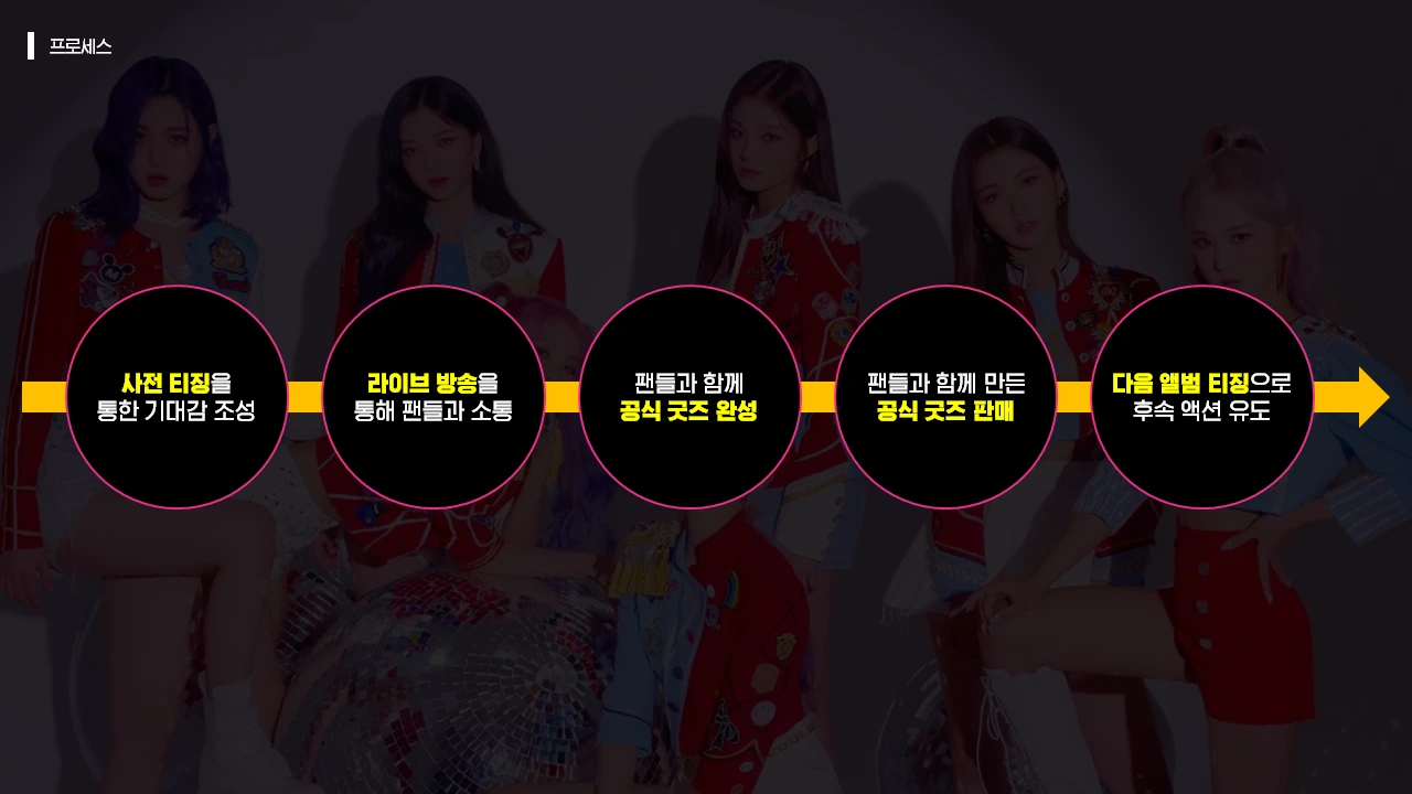 팬들이 직접 참여하고 소통하며 함께 스토리를 만들고 > 스토리가 녹아든 굿즈 제작으로 이어지며 > 판매까지 이어지고 > 굿즈에 숨은 티저를 통해 다시 한번 팬들이 참여할 수 있도록 구성한 사례입니다.