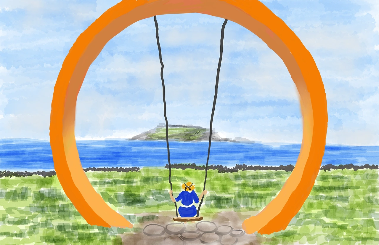 글라스하우스 카페에 앉아 있으면 바다와 함께 성산 일출봉을 조망할 수 있다. 글라스하우스 앞 그네에 앉으면 그네의 둥근 테두리 안에 성산 일출봉이 쏘옥 들어 가 예쁜 포토존이 된다.