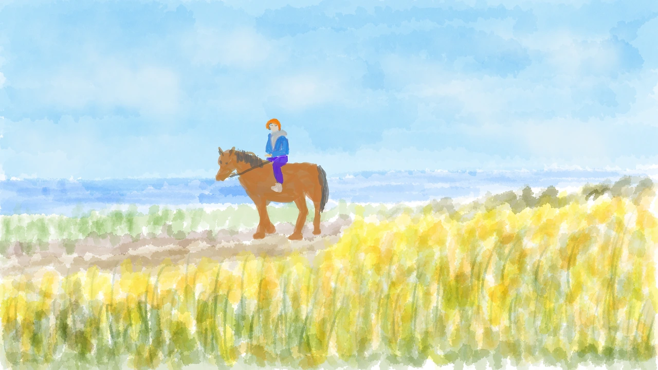 1인당 5천원으로 유채꽃과 바다를 배경으로 승마 체험을 할 수 있다.