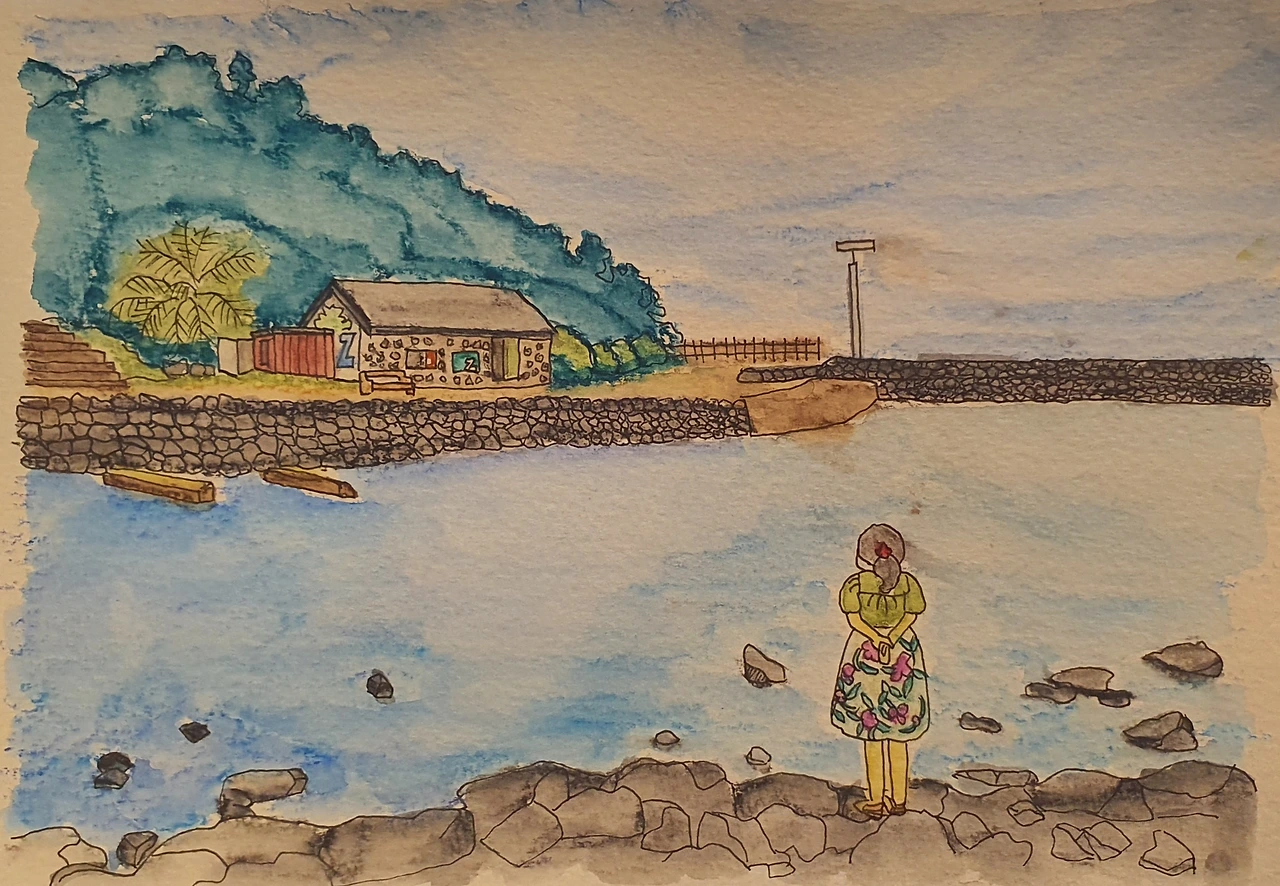 드라마에서 럭키슈퍼 건물은 내가 제주살이하던 2022년에는 갤러리 카페였는데 너무나 예쁜 건물이라 그림에 꼭 담고 싶어 수채색연필로 그려 보았다.
