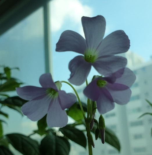 그리고 물을 담아주면 다음날 아침엔 다시 허리를 꼿꼿하게 세워 인사한다. 클레로 덴드롱은 물만 주면 일 년 내내 돌아가며 하얀 꽃에 새끼손가락 손톱 크기의 빨간 입술이 얹힌 꽃을 피운다. 사랑초는 약지 손톱만 한 크기의 여리디 여린 연한 보라 핑크 꽃을 일 년 내내 피워 보인다. 영락없는 사랑의 모습으로.