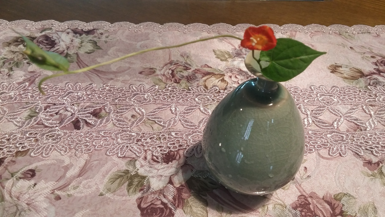*텃밭 한편에서 자라 오르던 콩 줄기 꽃이 식탁 위에 놓이고...