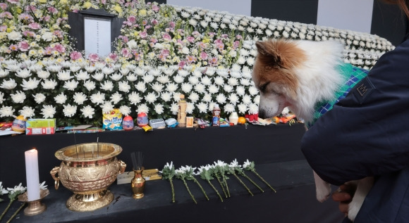 *제주항공 여객기 참사로 주인을 잃은 반려견 푸딩이의 5일 서울시청 합동 분향소 방문 모습 (출처: 한국일보 2025-01-06/ 서울신문 2025-01-05)
