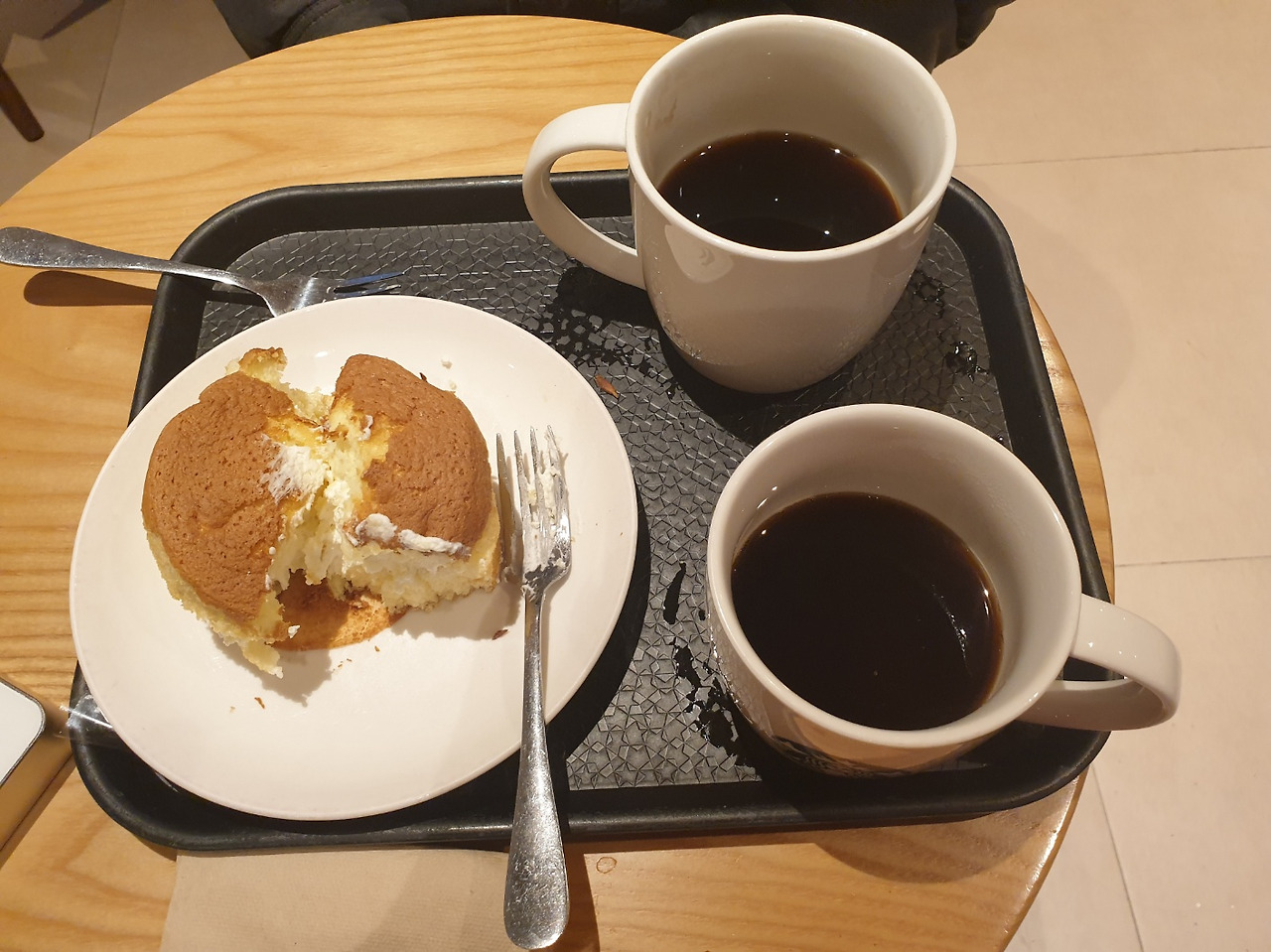 *미리 찍었어야 하는데 ㅠㅠ 고맙게도 매장 직원이 라지사이즈 한 컵을 우리 나이에 맞게 둘로 나누어 주었다. 한 컵은 저축해 주는 배려라니~^^