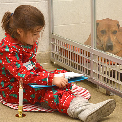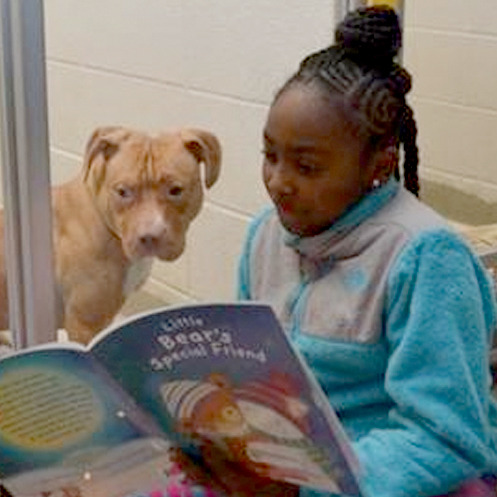 *Humane Society of Missouri의 보호소 개들에게 아동들이 소리 내어 책 읽어주기
