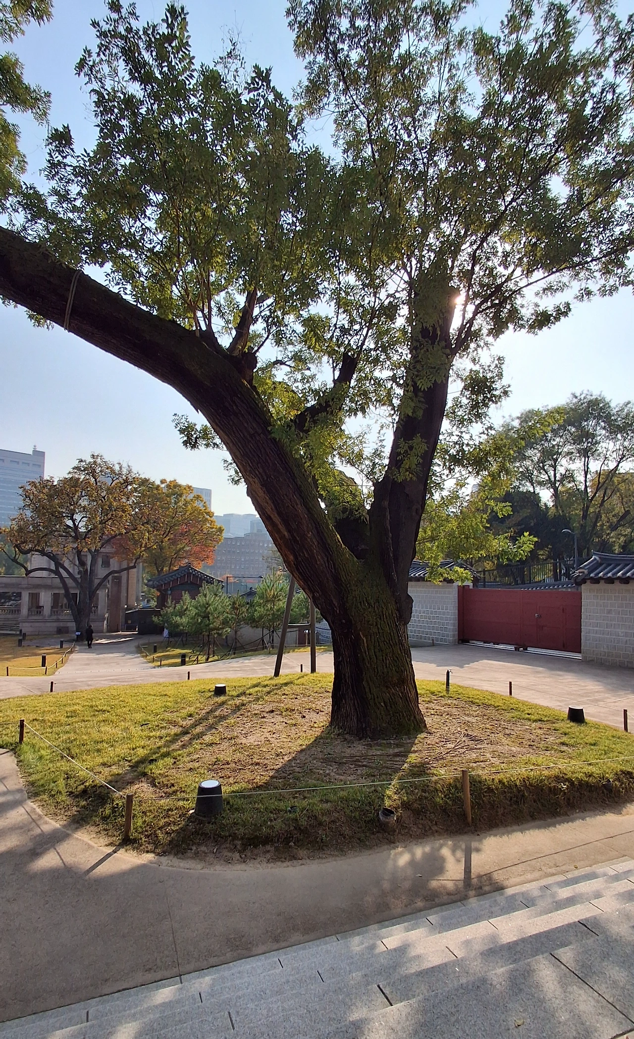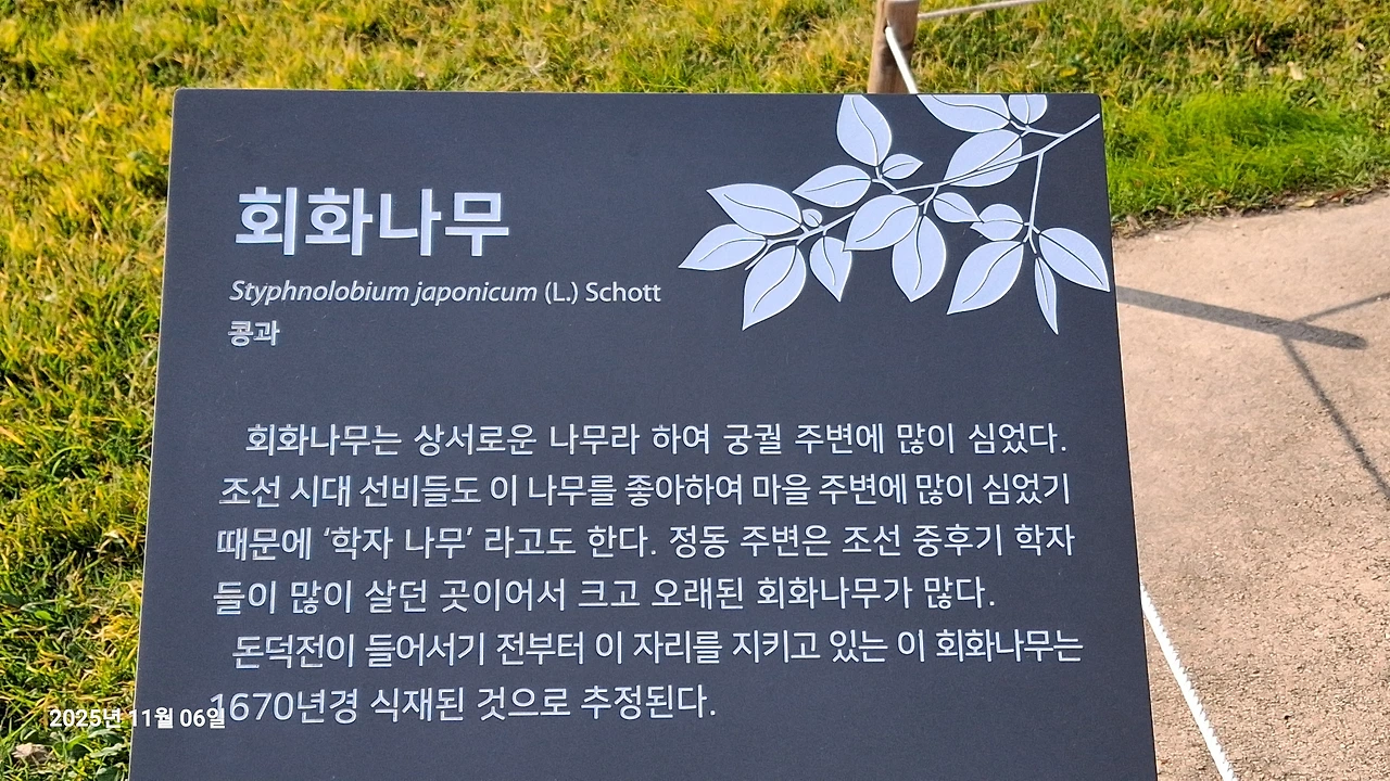 덕수궁 뜨락에서(아래가 회화나무)