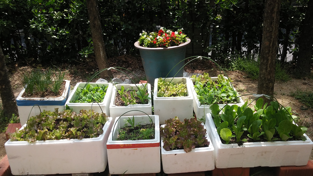 *우울한 큰누나의 햇살 아래 산책을 유인하기 위한 야채 상자 (2018). 아파트 관리실의 동의를 구했습니다.
