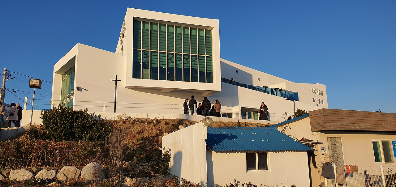 멀리 슬도등대가 보인다(좌). 오른쪽은 소리박물관의 모습이다.