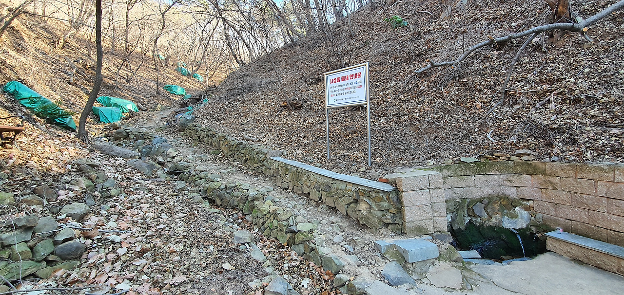 염포삼거리 근처에서 짬뽕을 먹었다. 그러고 보니 이번에는 짬뽕을 많이 먹게 된다. 참고로 지난번에 해파랑길을 걸었을 때는 물회를 많이 먹었었다. 염포산 입구에 소나무재선충 예방 나무주사 시행지라고 쓰여있다. 기간을 보니 2017년 1월이다. 그랬다. 그때 그기간에 이길을 걸었었다. 소나무들을 다 베어내고 훈증처리를 한 포장 더미가 산 골짜기 곳곳에 쌓여 있었고, 건너편 골짜기에서는 나무 자르는 소리가 쉬지 않고 들려왔었다. 나무들이 말을 할 수 있다면 홀로코스트라고 부르짖었을 것이다. 그들의 사유의 힘을 필력으로 모아 호소성 짙은 기사들을 언론에 실었을 것이다. 걷는 내내 독한 약제(우리가 농약이라고 부르는) 냄새에 목과 코가 아프고 머리가 지끈거렸었다. 숲엔 아직도 그때의 상처가 아물지 않았다. 나무를 훈증 처리한 흔적도 사라지지 않은 채 나무를 덮은 방수포가 조금씩 찢겨 가고 있다. 염포산 골짜기에 있는 약수터는 산길을 오르던 이들이 잠시 목을 축이고 쉬어가던 공간이었는데 지금은 비소가 초과 검출되어 약수터를 폐쇄했다는 안내판이 세워져 있다. 손을 대보니 물은 여전히 시원한데 눈에 보이지 않는 비소가 있다니 손을 씻는 것도 찜찜하다.
