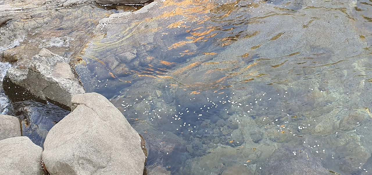흐르는 물에 내 꽃잎 흘려보냅니다