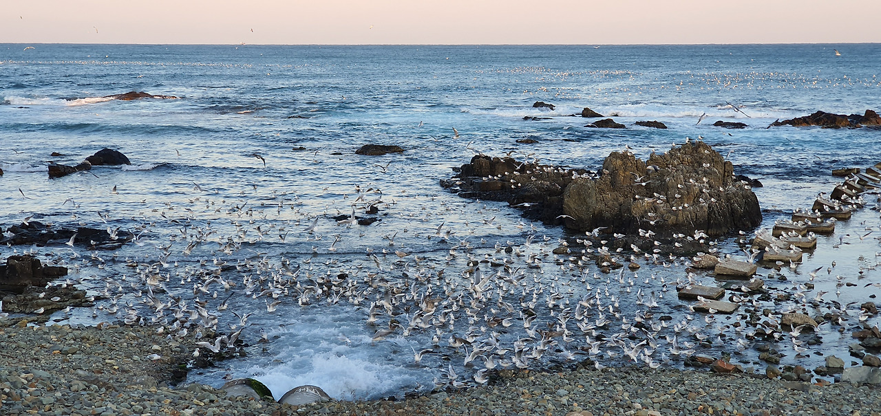 석병리 양어장 배출수 주변의 갈매기들과 석병리 성혈바위. 어둠이 내린 다무포에서는 다른 일정만 없다면 바닷가의 펜션에서 파도소리 들으며 자고 싶었다.