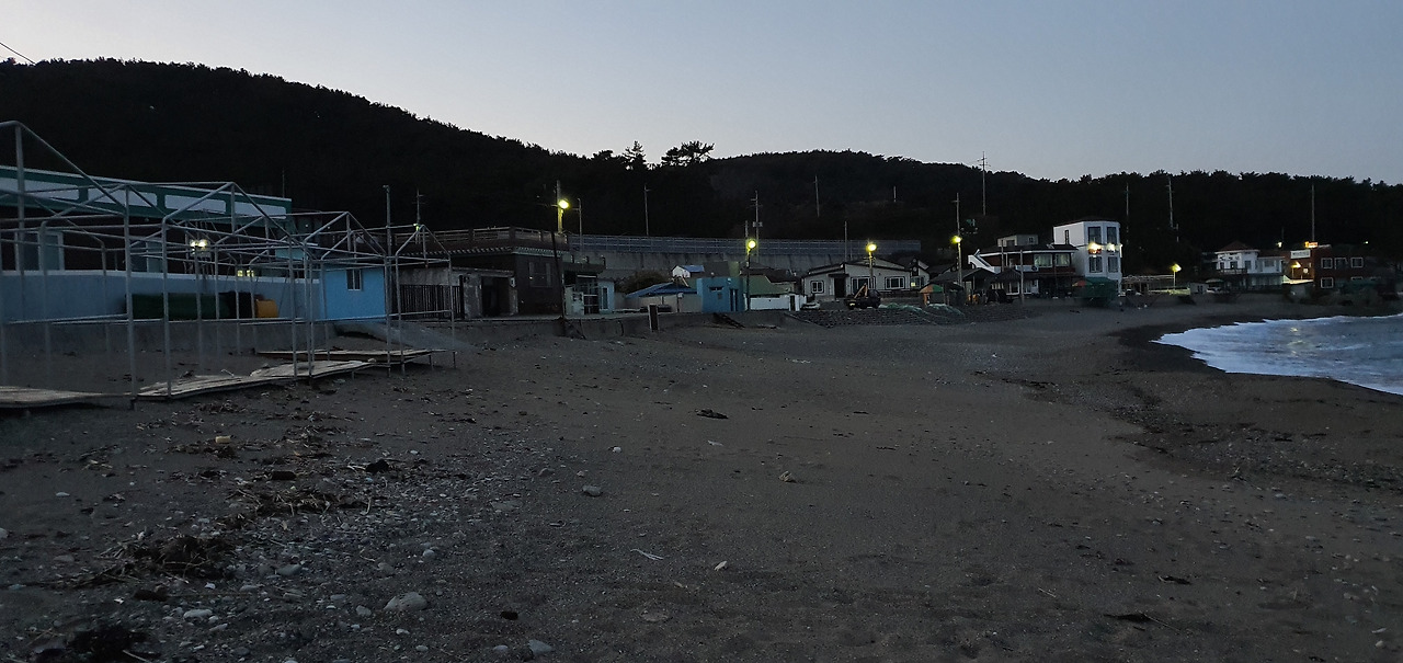 다무포에 어둠이 내리고 집집마다 불이 들어온다. 바닷가로 가는 길은 어두운데 누군가 나를 쫓아 나온다. 숙소를 찾는 사람인 줄 알았나 보다. 다무포 고래마을을 지나며 완전히 어둠이 내린 길을 따라 하염없이 걷기만 한다. 이 근처의 바닷가가 낯선 풍경과 길을 따라 양어장의 물이 흐르는 곳 하며 감상할 만한 곳들이 꽤 여러 곳인데 지금은 볼 게 별로 없다. 추위와 파도소리, 멀리 보이는 불빛이 전부이다. 그나마 강사 2리를 지나면서부터는 바다의 데크길이다. 어둠에 앞이 보이지 않는 길을 휴대폰 불빛에 의지해 걷다 휴대폰을 닫고 잠시 멈추어 하늘을 보았다. "아, 별이다." 하늘엔 오리온자리의 삼태성이 코 앞처럼 선명하게 보인다. 쏟아질 만큼 많은 별도 아니고, 바다에 떠있는 어선들의 불빛보다 약한 별빛이지만 깨끗한 하늘에서 반짝이는 별이 가슴을 따뜻하게 데워 준다. "이게 밤에 걷는 맛이다." 어두운 데크길을 벗어나자 카페의 환한 불빛이 바다를 비춘다. 겨울 파도는 거칠다. 바위틈에서 부서지고, 불현듯 일어서는 파도의 밤놀이를 구경하며 어두운 길을 걷는다.