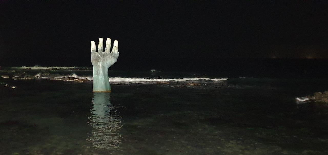 광장에 있는 손조각과 문어의 형형색색 변화 하는 모습은 진짜 문어의 위장색보다 훨씬 화려하다.