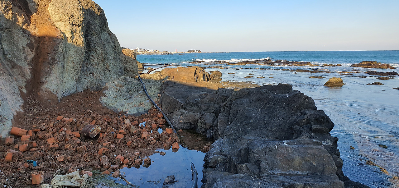 구룡포 해안은 주변에 사는 사람들이 연탄을 버려 쓰레기장이 되어 버렸다.