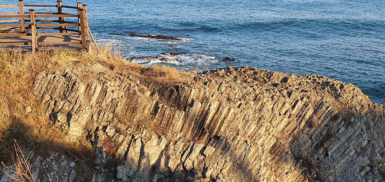 불꽃놀이 축포가 터져 오르듯 윗쪽으로 퍼져 나가는 형상을 한 구룡포 주상절리