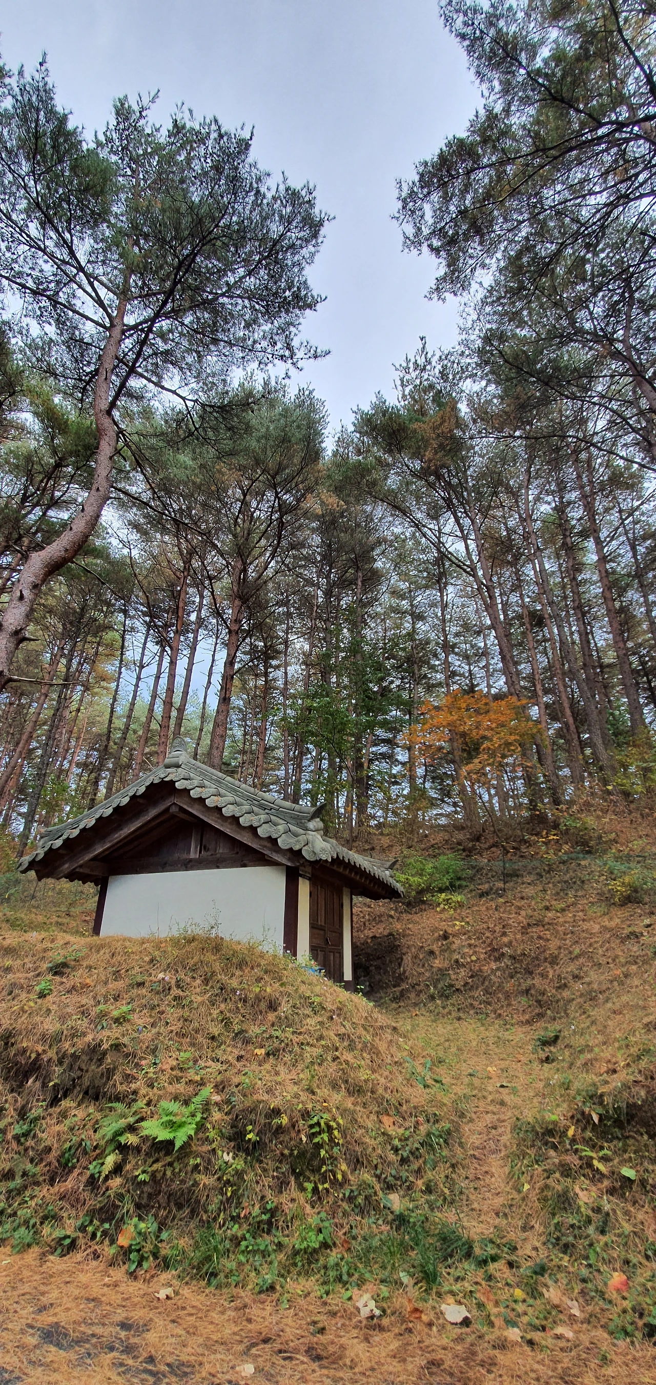 조금 높은 곳으로 올라가 멀리 보이는 바다를 잠깐 바라보다 소나무 숲을 따라가다 서낭당에 잠시 들렀습니다. 커피와 서낭당은 전혀 어울리지 않는 곳인데 이곳에 오게 되면 늘 이 서낭당을 들르게 됩니다. 김동리의 소설 '무녀도'에서 동서양의 문화는 만나 충돌을 일으키고 비극으로 끝납니다. 세계가 서로 영향을 주고 받는 동시간대의 생활권에서 사는 요즘에 무녀도의 이야기는 이해되지 않는 풍속이 되었습니다. 많은 사람들이 이제 강릉에서 소나무와 커피를 연관지을 수 있습니다. 테라로사처럼 소나무숲 안에 자리를 튼 유명한 카페도 생겼습니다. 서낭당도 얼마되지 않아 카페의 중요한 경관이나 이야기중 하나가 될 수 있을지 모릅니다.