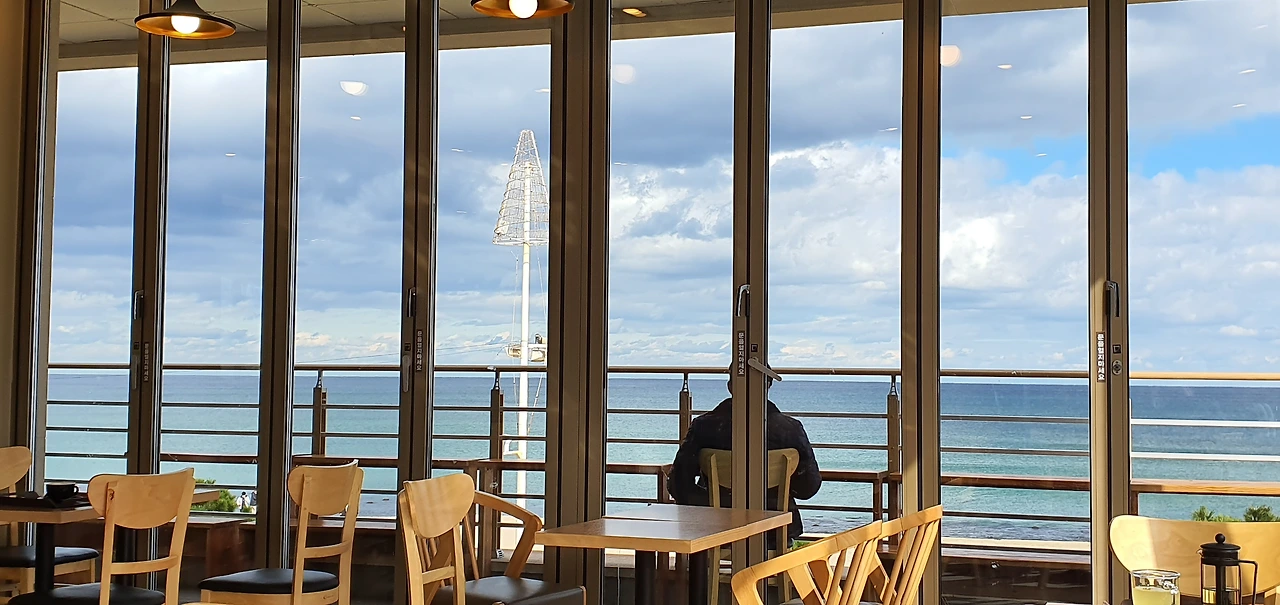 바다가 보이는 창가에 앉으면