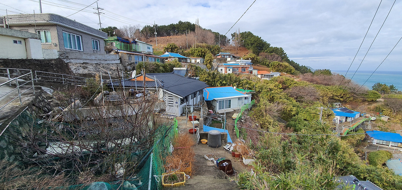 도로에서 내륙 쪽으로 위치한 석리마을. 바다 쪽의 밀도 높은 집들과는 달리, 최근에 집들이 들어서고 있음을 알 수 있다.