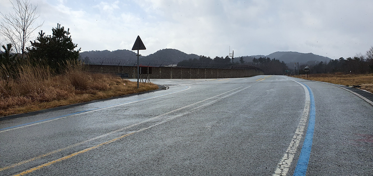 울진 비행장 앞의 뻥 뚫린 길을 걷는다.