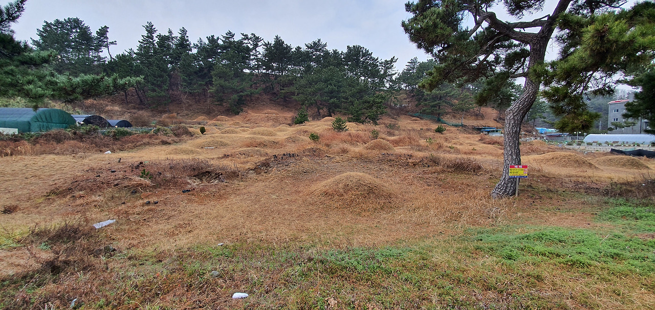 거일 1리를 향해 걸음을 옮기며 바다와 마주한 길을 따라가지 않고 뒷골목을 걸어본다. 잠깐 걷는 길에서 특별히 누굴 만나거나 새로운 풍경을 보는 건 아니지만 마음이 차분히 가라앉는다. 마을 입구 정자 옆 바위에 붙어 무심히 아침 바람을 맞는 눈향나무처럼 평소에 그냥 지나치는 일상이 우리가 살아 있음을 깨닫게 해주는 각성제가 아닐까. 직산 2리 마을 입구에 바다를 바라보는 공동묘지가 있다. 이 무덤의 주인들은 이 마을에 살았던 사람들이 대부분일 텐데 요즘은 이런 공동묘지들이 개발에 의해 하나둘 사라지고 있다. 이 무덤의 뒤편도 전원주택 부지로 개발된 상황이라서 머지않아 개발의 영향을 받을 것 같다.