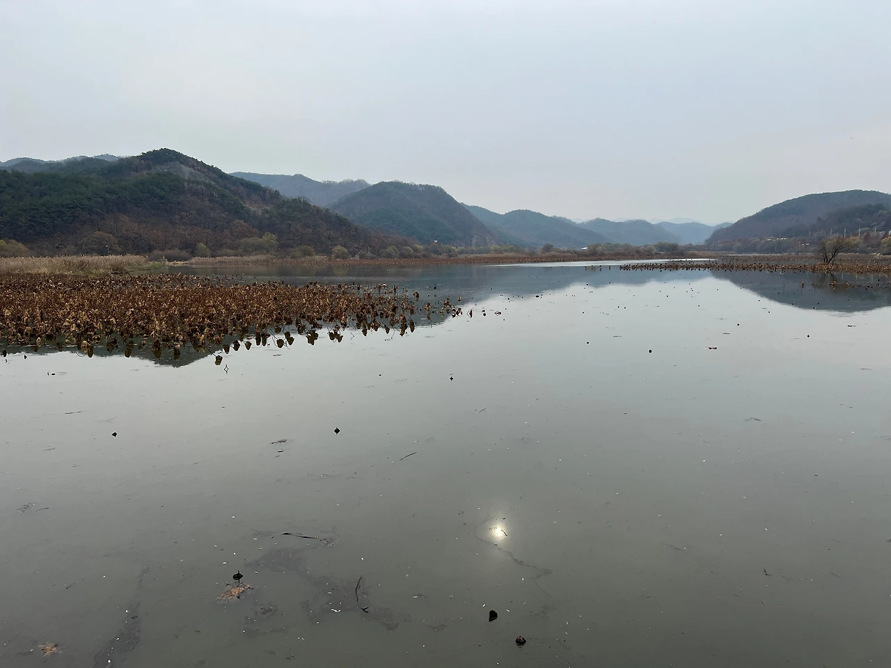 줄기 꺾인 연밭 지나