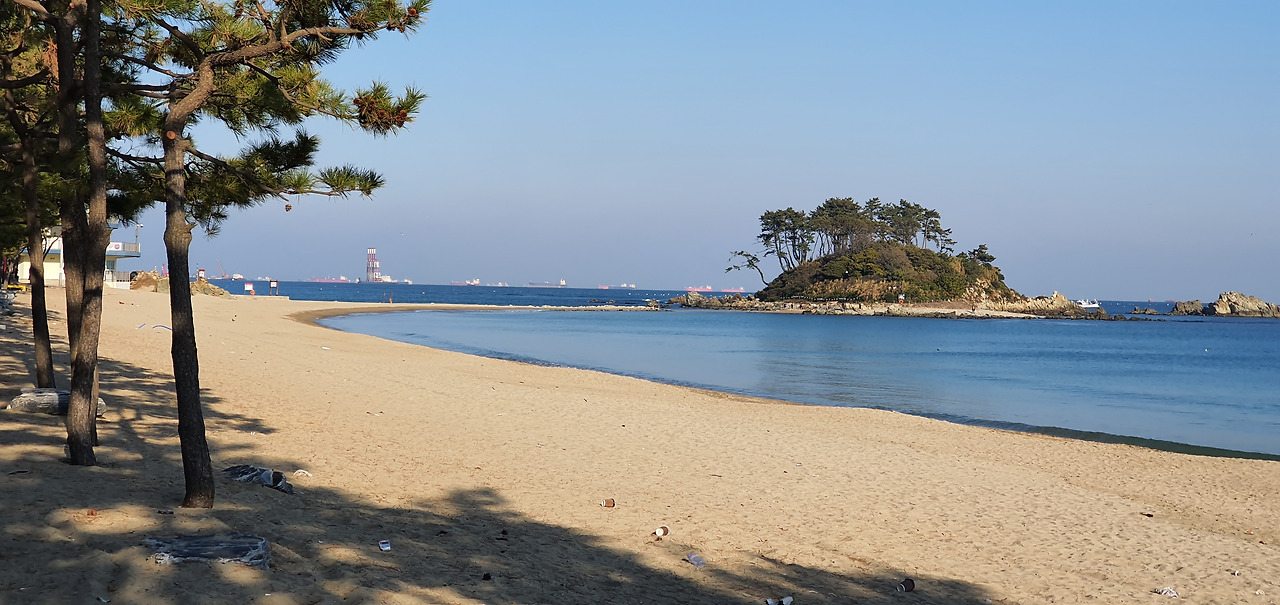 솔개해수욕장에는 파도를 타는 보드를 울타리로 꽂아 놓았는데 이제까지 보지 못했던 것이라 그런지 독특하다. '망가진 걸 꽂아 놓은 거겠지?' 모래사장을 지나 바위들이 오손도손 서있는 해변에는 신랑각시바위가 있다. 이렇게 경치 좋은 곳에 서 있으니 마치 신혼여행이라도 온 것 같다. 이 바위지대는 진하해수욕장과 솔개해수욕장을 구분하는 경계이기도 하다. 바위지대의 끝부분에 있는 대바위공원에서 보니 진하해수욕장의 솔밭이 눈앞에 펼쳐진다. 진하해수욕장을 알리는 빨간 이니셜이 세워진 곳에 빨간 옷을 입은 어린 남매가 앉아 있다. 일부러 맞춰 입고 온 것은 아닐 텐데. 아이들이 예뻐 보이는 건 만국 공통이다. 가끔 그렇지 못한 어른들이 있어 세상이 흐려지긴 하지만, 아이들의 맑은 영혼이 어른들의 두터운 때를 지워 주면 좋겠다. 진하해수욕장의 모래사장 끝에는 한 뼘쯤 육지와 떨어져 있는 명선도가 보인다. 물이 빠지면 섬으로도 들어갈 수 있고, 5분 정도 거리를 걸어볼 수도 있다. 섬에는 곰솔과 2m 내외의 수목들이 자라고 있는데 섬에서 많이 자라는 이대인 것 같은데 확실치가 않다. 휴대폰에 찍힌 사진 역시 상을 왜곡시켜 알아보기가 어렵다. 인터넷에 올린 이미지를 찾아보니 대부분 일출 사진밖에 없다. "이것도 편식이다." 혼자 중얼거리는 내가 신기했는지 할머니 한분이 어디서 왔냐고 물어보신다. 할머니는 바다를 보시며 끌탕을 하신다. 바다에는 갈매기들이 잔뜩 앉아 있었다. "왜 그러시는데요?" " 아, 저 갈매기들이 고기를 다 잡아먹잖아." 해수욕장 앞으로 와야 하는 물고기들이 갈매기들 때문에 오지를 못해 낚시꾼들이 허탕만 친다고 하신다. '동희식당' 사장님이신 할머니는 손님이 오지를 않아 다들 문을 닫고 있다고 한숨을 쉰다. "비수기라 그런가요? 할머니는 왜 안 쉬세요?" " 뭐 할 일도 없는데 문이라도 열어야지." 웬만하면 이곳에서 자고 갔으면 좋겠는데 이제 3시 밖에 되지 않았다. '아, 더 가기로 했지.'