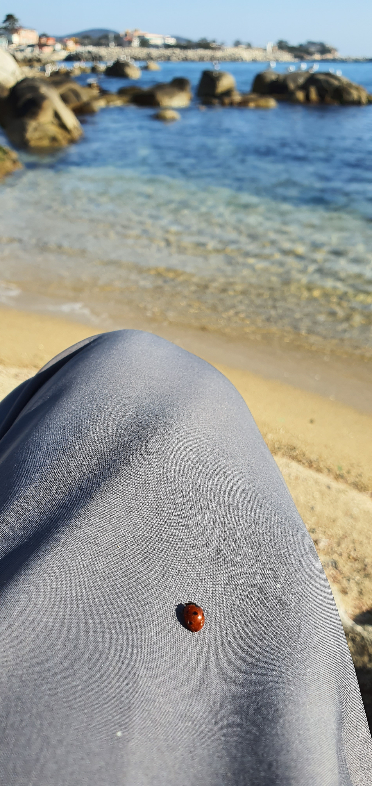 신암리 서낭당의 모습(좌)과 바닷가에 앉아 있는 나를 찾아온 무당벌레(우)