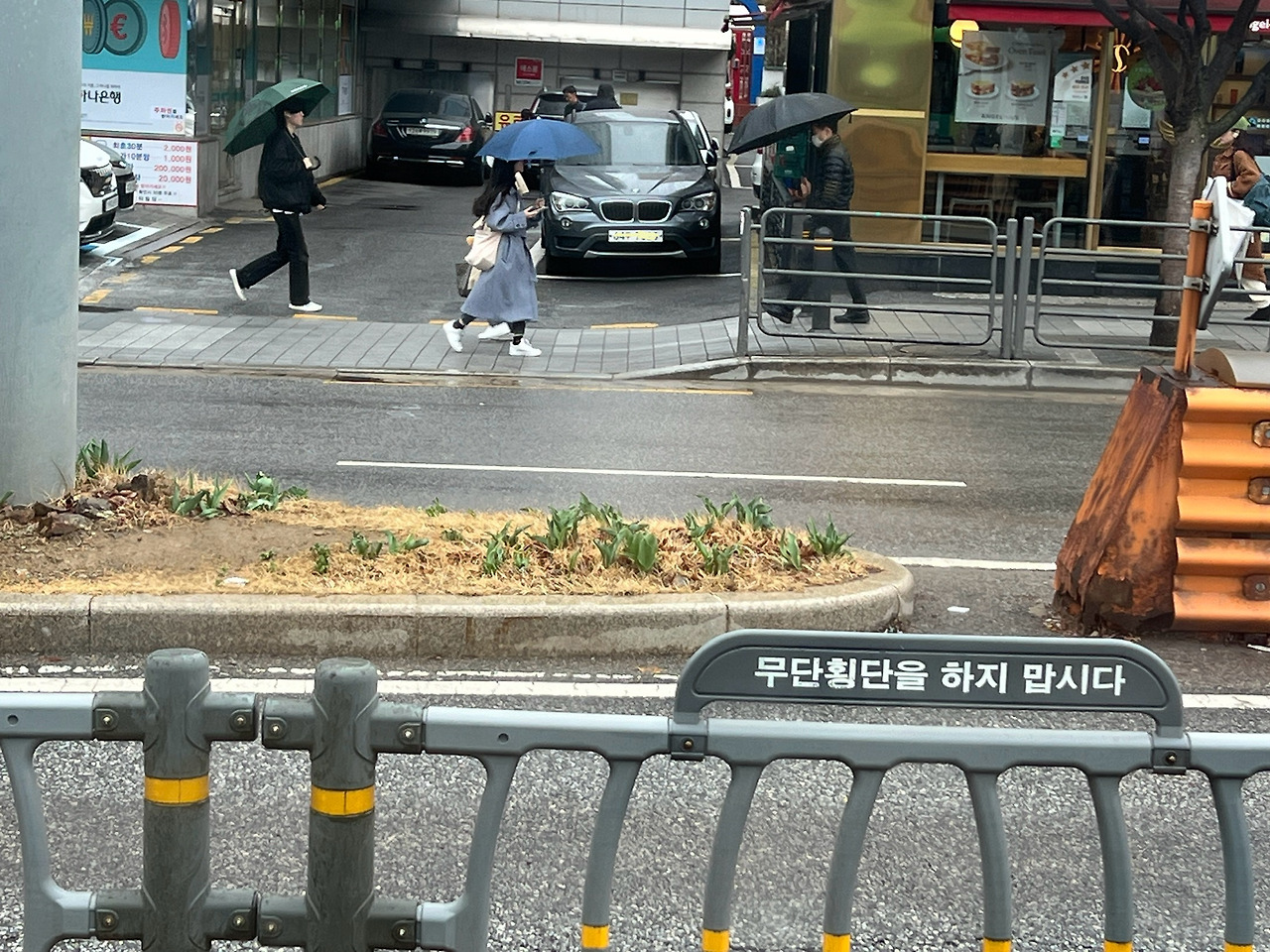 돌처럼 굳은 교통섬에 몇 년 전 심은