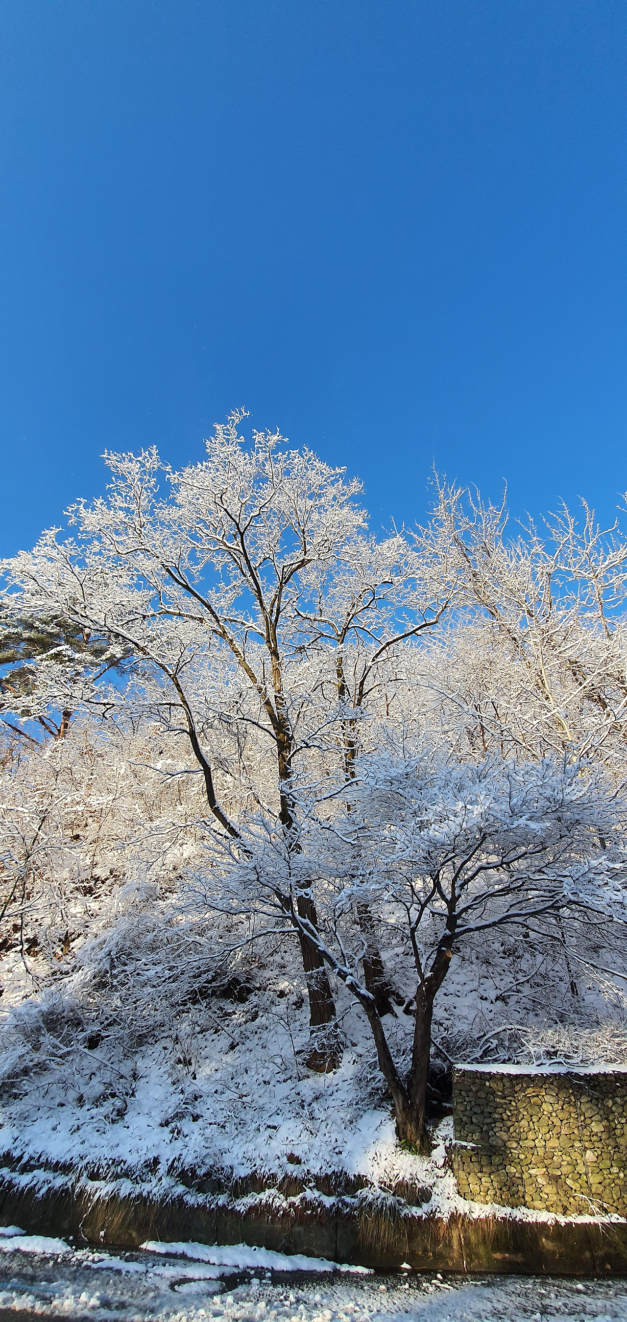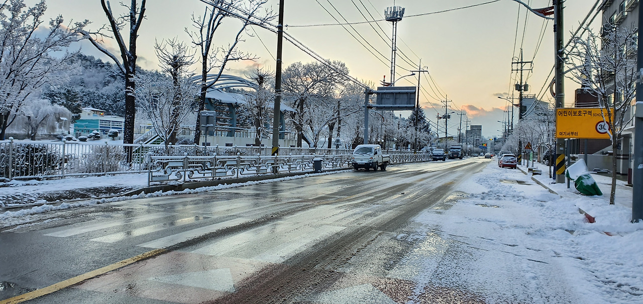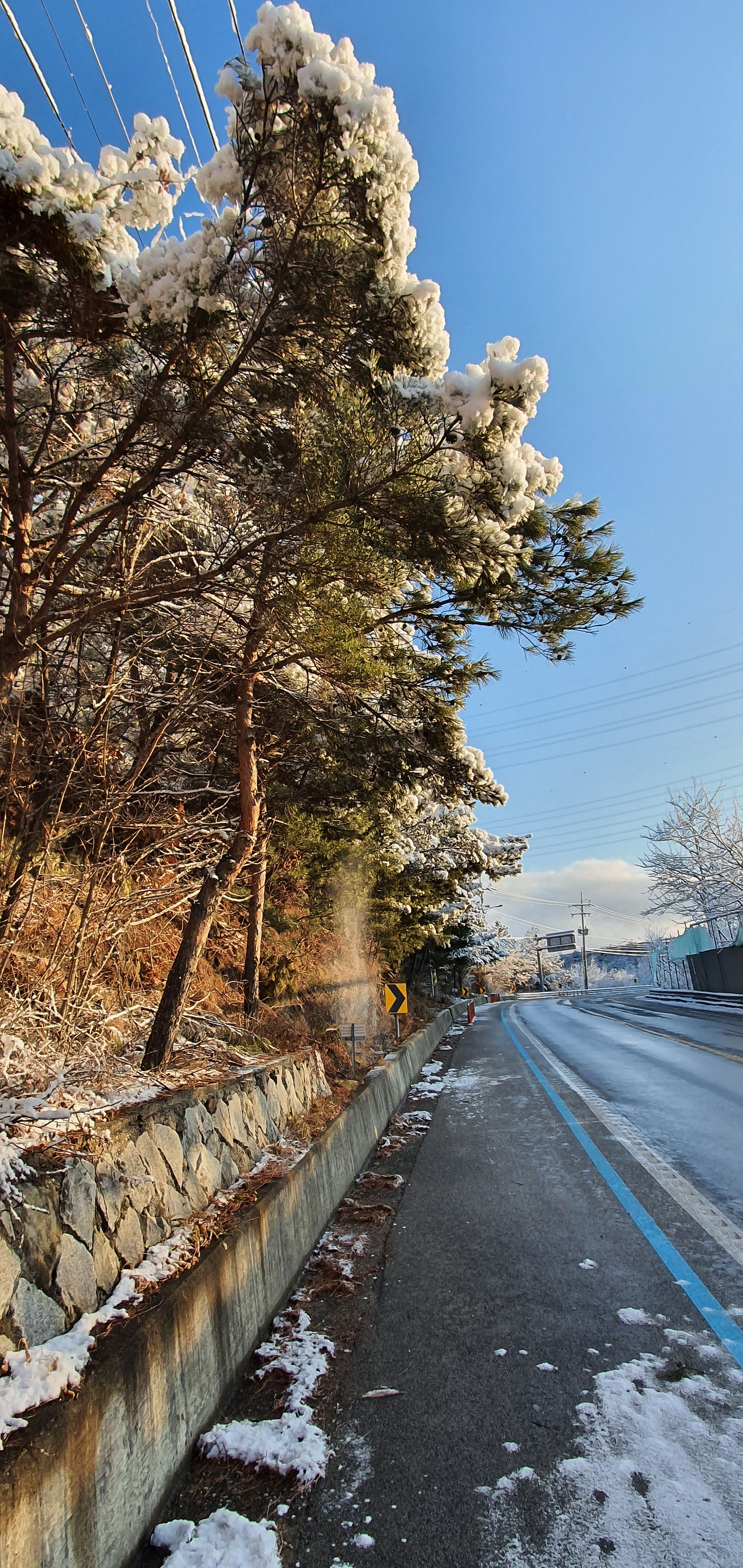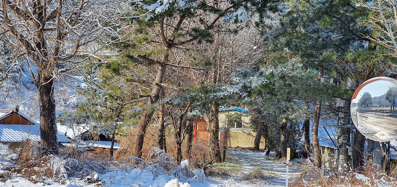 길가의 소나무에 쌓인 눈들은 해가 뜨면 빠른 속도로 녹아 내린다. 부지런히 아침을 걸은 덕분에 볼 수 있었던 기분 좋은 순간이다.
