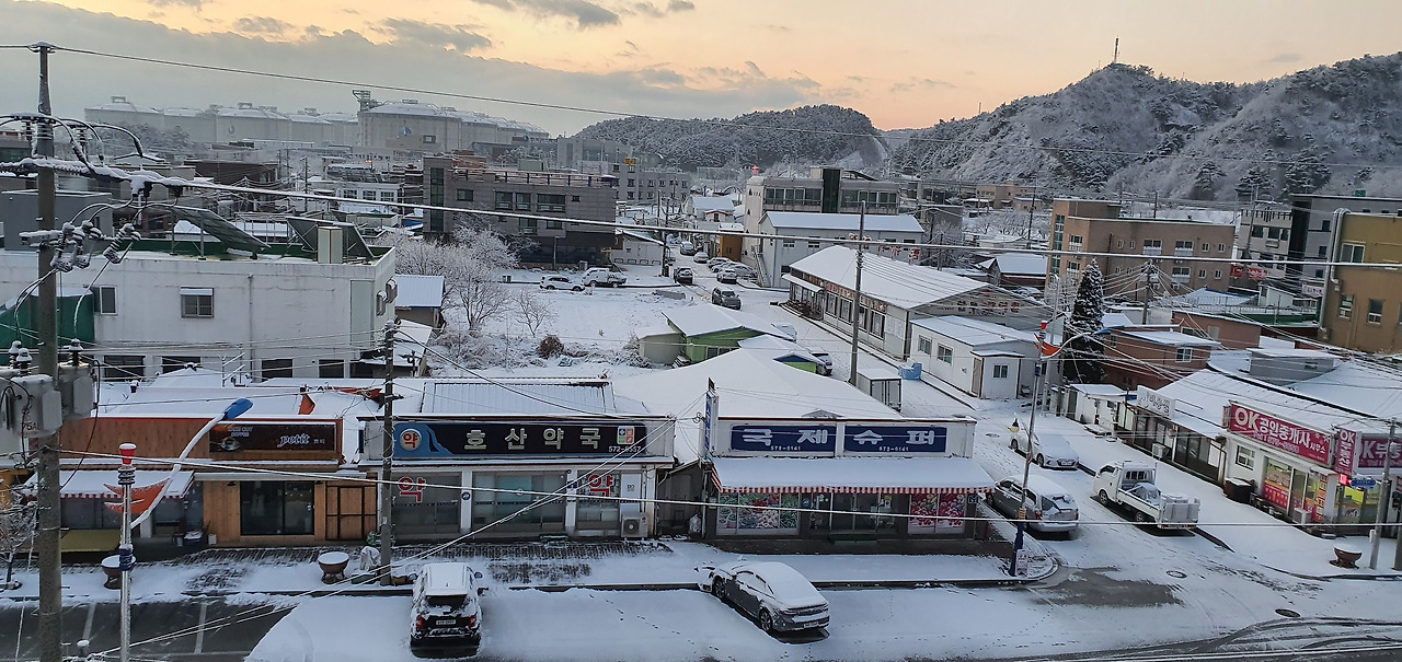 새벽 네 시도 안된 시간에 누군가 눈을 가래로 치운다. 부지런한건 좋은데 그 덕에 내 잠도 모두 날아가 버렸다. 아침에 멀리 불난 것 처럼 보이던 산은 별 탈 없이 서있다.