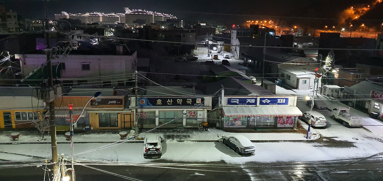 진눈깨비가 눈으로 내려 떡가루를 묻히듯, 설탕물을 입히듯 세상은 달콤하고 맛있게 변해버렸다. 밤길을 걸은 탓에 늦게 잠자리에 들었으나 북북 무언가 긁어내는 소리에 잠이 깼다. 창문 밖에는 누군가 가래를 밀며 조금씩 앞으로 나가고 있었다. 저 너머 보이는 가스저장소도 불을 끄지 못하고 밤을 새우고 있었다. 한참을 눈 쓰는 이를 바라보았다. 그렇게 밤은 소리로 잠을 깨우고 불빛으로 자극하며 여행자를 잠 못 들게 하였다.