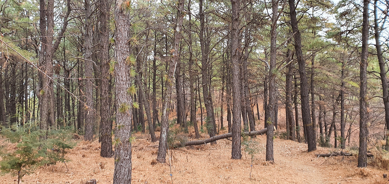 산 정상에서 내려가는 길에는 리기다소나무 식재림이 우거져 있다. 잎이 2장인 소나무와 달리 잎이 3장씩 달린 리기다소나무는 외래종이다. 조림을 할 때 얼마나 많이 심었는지 전국 어느 곳을 가던지 리기다소나무를 볼 수 있다. 리기다소나무 숲에서는 송이버섯이 자라지 않는다. 내리막길에는 스트로보 잣나무 식재림 사이로 길이 나있어 아름다운 경치를 이루고 있다. 산을 내려오면 습지에 애기부들, 연 등이 자라는 선암호수공원이 있다.