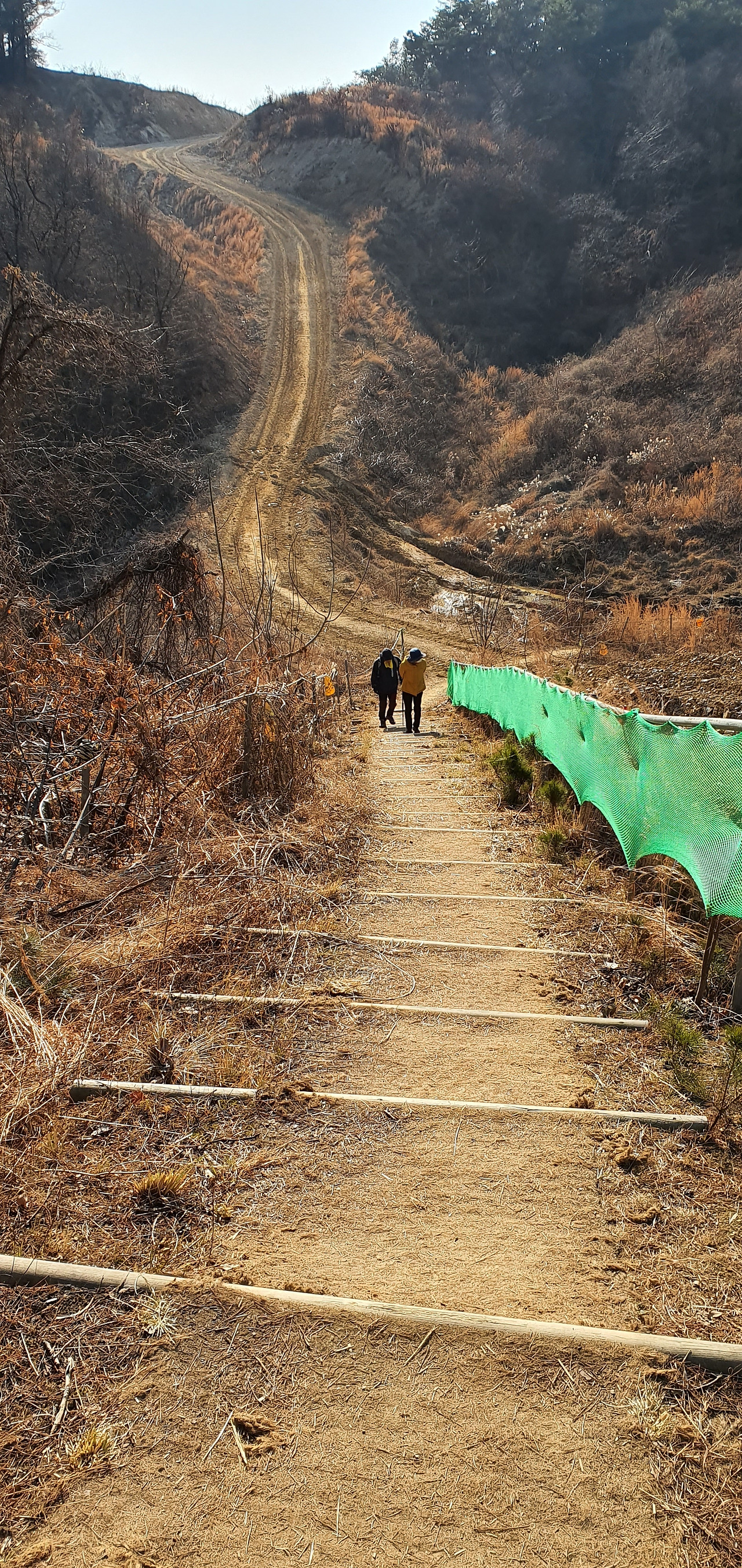 아이들의 목소리가 산 아래쪽에서 들려온다. 울산대공원의 어린이 교통안전공원에서 나는 소리다. 아이들의 웃음소리를 뒤로하고 숲길을 걸어 옥동에 도착했을 때 대규모로 산허리를 자르고 도로를 내고 있었다. 횡단면이 잘린 숲은 토양층에는 암석층부터 표토층까지 한눈에 드러나고 있다. 항공지도를 보면 이 일대가 도로공사에 의해 완전히 끊겨 있는 것을 볼 수 있다. "아직도 이런 방식으로 산을 절단 내 도로를 만들어야 하나." 길을 돌아가는데 아래쪽으로 내려갔다가 다시 계단을 올라가야 하는 게 짜증이 났다. 산길이 계속되어 힘든데 이런 길까지 나오다니. 여기에 도로가 난 후에 동물들에겐 뭐라고 할까? "불편하니 돌아가 주시면 고맙겠습니다."라고 써붙이기라도 할까. 공사가 끝난 후에는 생태계를 복원한다고 하며 '에코브리지'를 세울지도 모른다. 아마 그럴 것이다. 돈을 쓰고 돈을 버는 사람들이야 이처럼 딱 맞는 사업이 없을 테니까. 그런데 생각해보자 누가 이 산길을 이용하고 있으며, 새 길이 생기면 이용할 사람은 또 누구 인가를, 주와 종이 바뀐 채 돈에 대한 권력을 가진 사람들이 주도하는 공사방식은 이제 없어져야 한다.