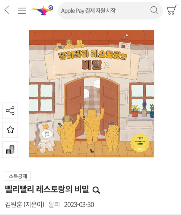 지나고 보면 그림책도 작가의 자식 같은 존재라는 생각이 든다. 앞서 말한 자식을 떠나보내는 부모의 심정이 바로 이런 것이구나라고 조금이나마 이해하게 되었다. 더욱이 <빨리빨리 레스토랑의 비밀>은 내가 처음으로 쓰고 그린 그림책이다. 누군가에게 처음이라는 것은 특별할 수밖에 없기에, 이 책에 대해 공허함과 애틋함 등 여러 감정이 오고 가는 듯하다.