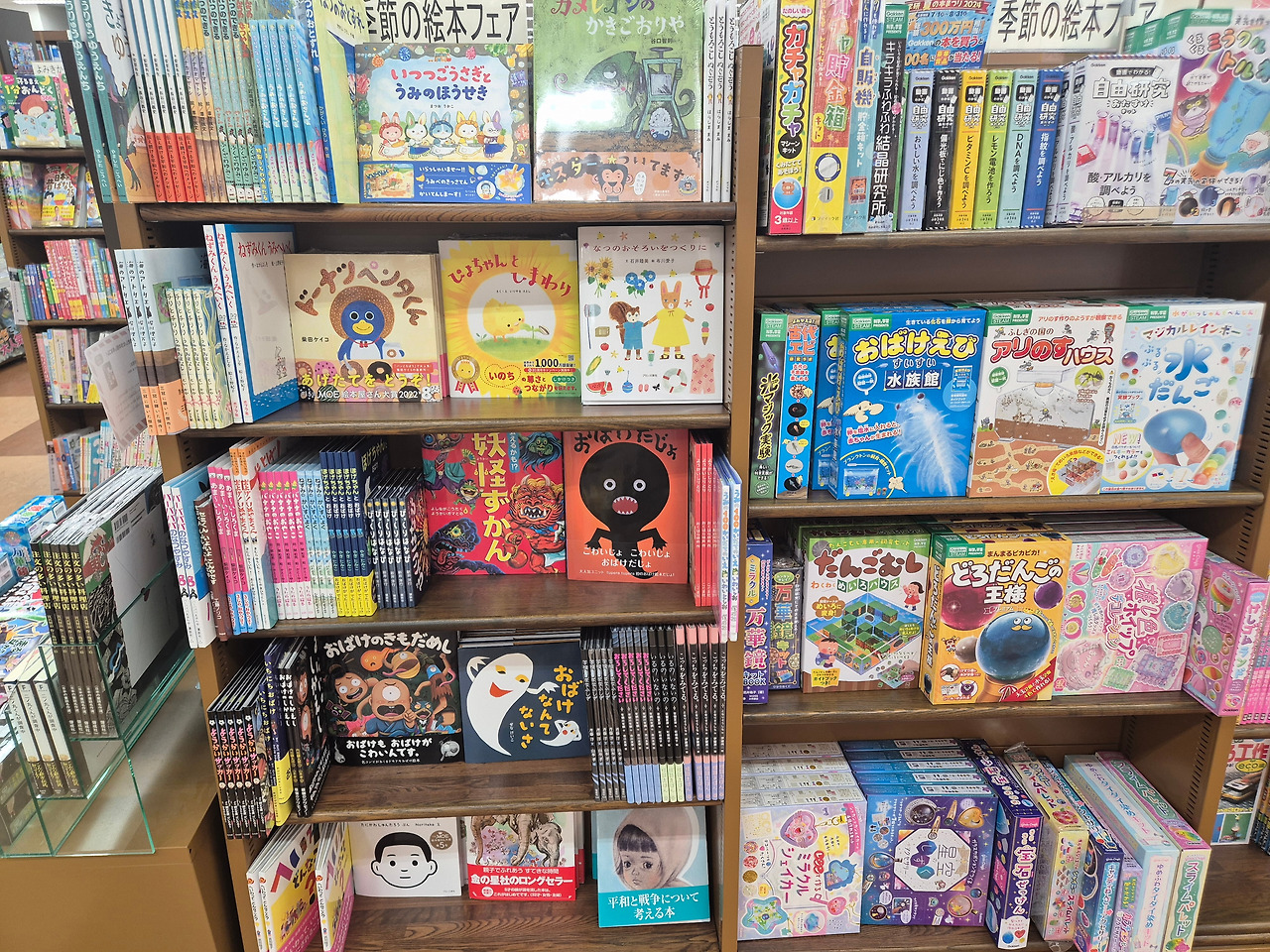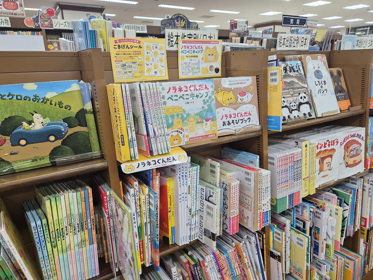 두 번째 특징은, 많은 그림책은 아닐지라도 [그림책의 표지를 볼 수 있는 세팅]이었다. 서점 속 그림책코너가 차지하는 공간이 비중은 상당하였다. 덕분에 각 책꽂이마다 추천하는 그림책들의 표지를 한눈에 확인할 수 있었다. 마루젠 서점에서는 이렇듯 아이들이 직관적으로 그림책을 바라보고, 여러 주제 중 원하는 주제의 매대를 찾아 책을 고르기만 하면 되는 구조였다.