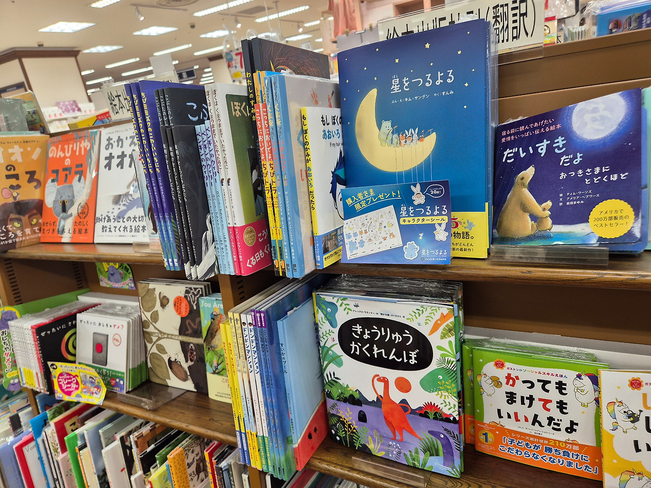 후쿠오카 마루젠 서점에서는 이렇듯 다양한 상품과 그림책을 구경할 수 있었다. 후술 할 다른 서점에서도 서점의 분위기나 그림책의 종류가 제각각이었지만, 마루젠 서점만의 특징으로는 1) 그림책작가, 캐릭터의 굿즈가 다양하고 2) 마루센서점 한정 상품들이 존재하며 3) 조명이 밝고 사람들이 바글바글한 분위기였다.