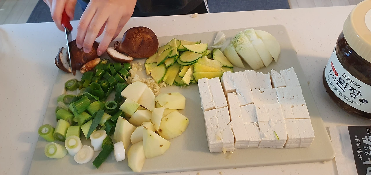 그래서 이번에는 절대 끼어들지 않으리라 마음 단단히 먹었다. 이번주 도전요리는 한국사람인증 음식인 '된장찌개'를 해보겠다고 한다. 된장찌개와 함께 고기를 구워먹겠다는게 딸의 계획이다. 정말 이번에는 순수 자신의 힘으로만 모든 요리의 과정을 해보기로 했다. 나의 할일은 어떤 실수를 해도 그냥 지켜보는 것이다. 나에게 장착된 '선생모드'를 끄고, '잔소리 무음 모드'로 전환.