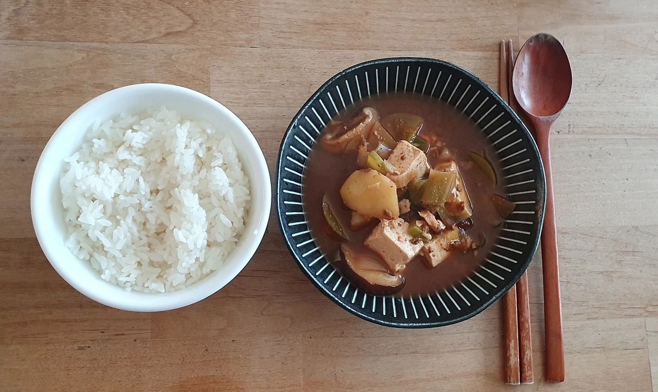 딸이 완성한 된장찌개를 흰쌀밥과 함께 한 입 먹었다.