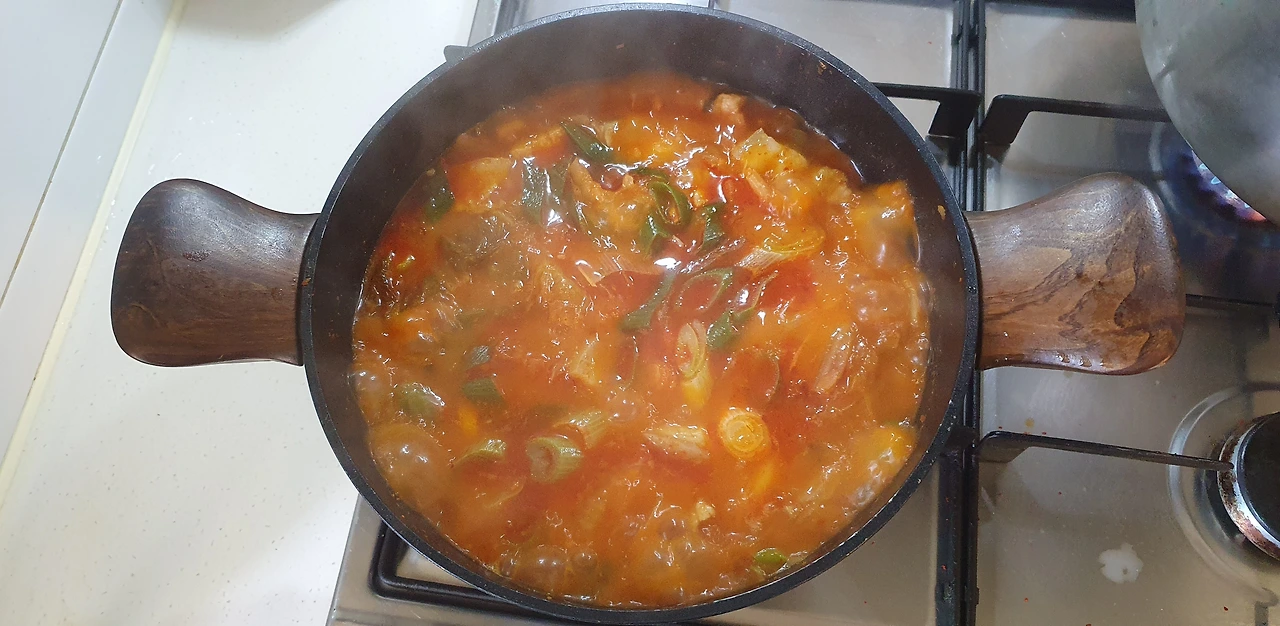그렇다. 김치찌개는 딸의 '소울푸드'다. 그래서 우리는 딸이 질리지 않도록 다양한 돼지고기 부위를 사용한다. 이를테면 가장 일반적인 돼지고기 앞다리나 뒷다리 말고, 고기 식감이 쫄깃한 돼지고기 사태나 기름기가 있어 걸쭉하고 진한 삼겹살을 이용하기도 하고, 가끔 등갈비나 감자탕용 돼지 등뼈를 이용하여 김치찌개를 만들기도 한다.