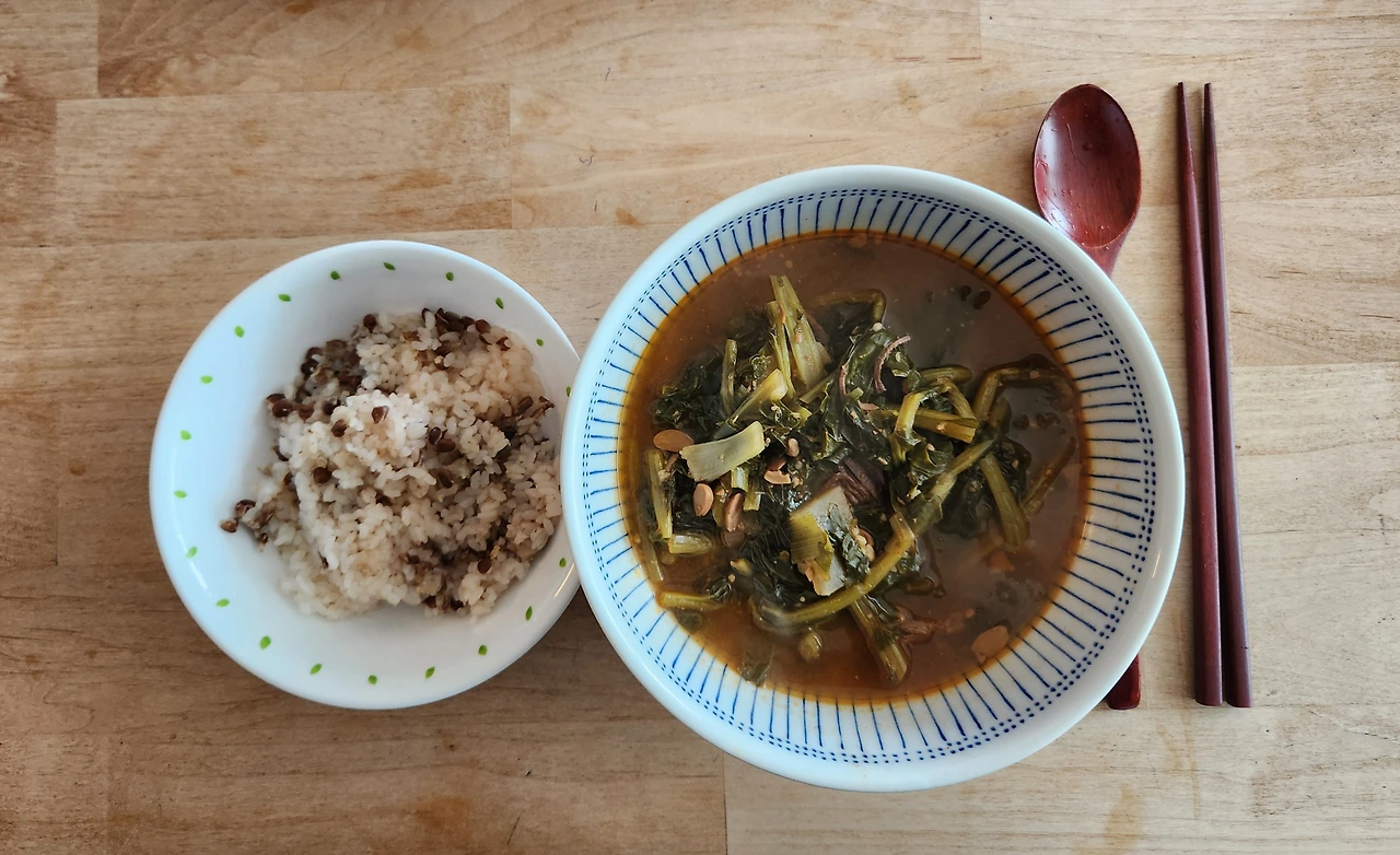 소고기 시레기 된장국과 렌틸콩밥
