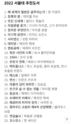 서울대가 이런 책들을 본교 학생들도 아니고, 전국의 고등학생들에게 추천할 가능성은 적다. 서울대가 이런 책 정도는 읽어야 지원이라도 해 볼 수는 자격이 된다고 했을까? 아니면 이 정도는 읽고 들어오라고 겁박하는 용도로 작성했단 말인가!
