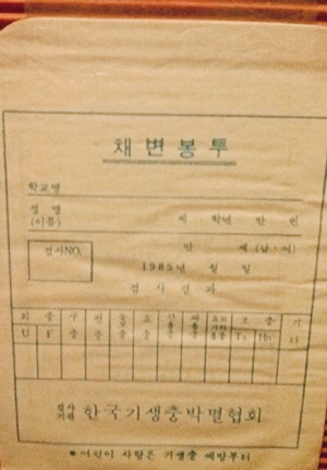 몇 학년 때인지는 기억이 나지 않는데 그해도 어김없이 그 연례행사가 돌아왔어. 엄마도 집에 가서 화장실 한편에 신문지를 깔고 제출할 물질을 추출했지. 그리고는 성냥개비로 아주 작게 그것을 떠서 반투명 비닐에 담았지. 혹시 냄새가 날까 봐 작은 종이봉투 입구는 풀로 바로 봉인을 해버렸어. 매년해도 하기 싫고 적응할 수 없는 일이였어.