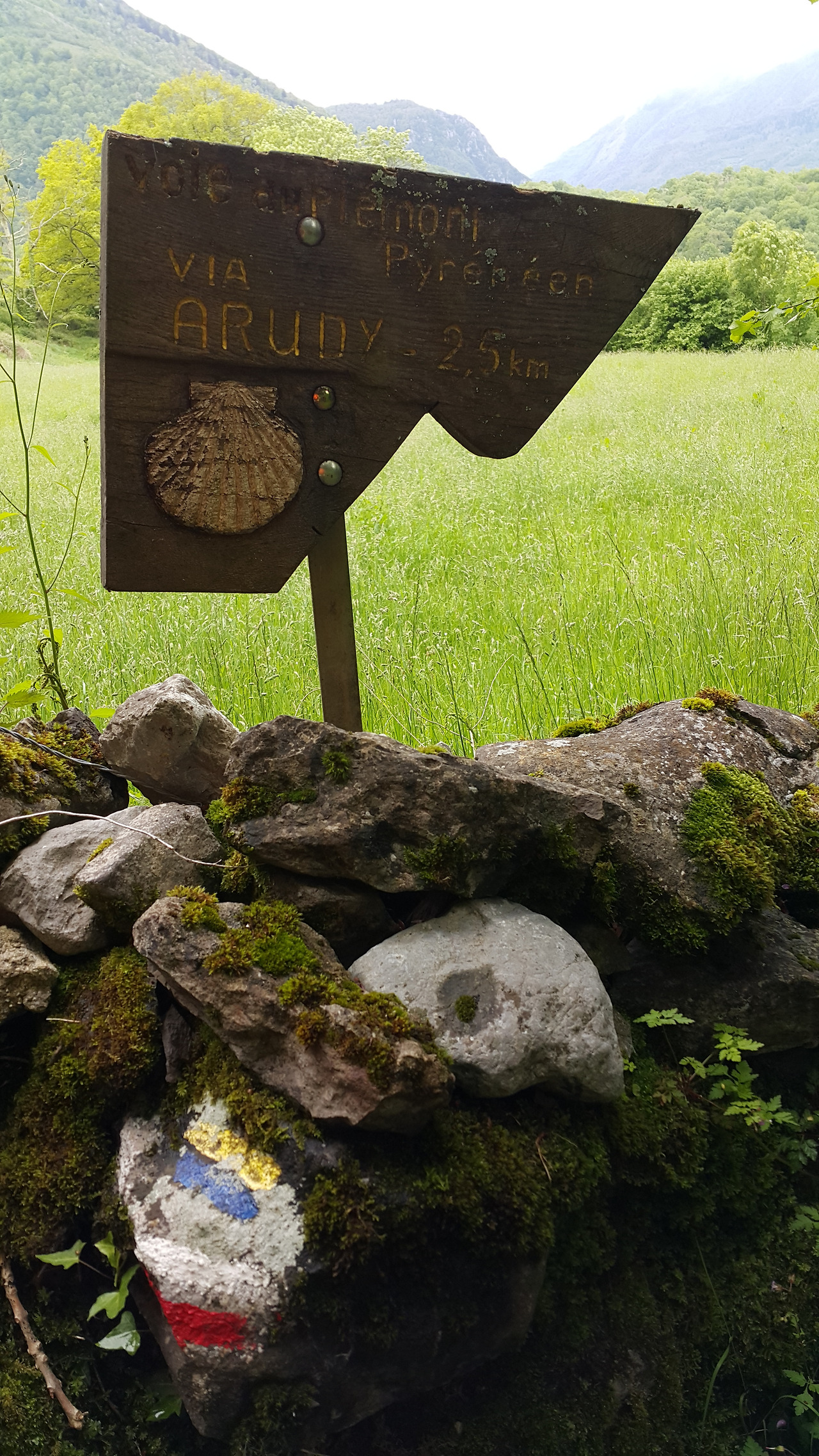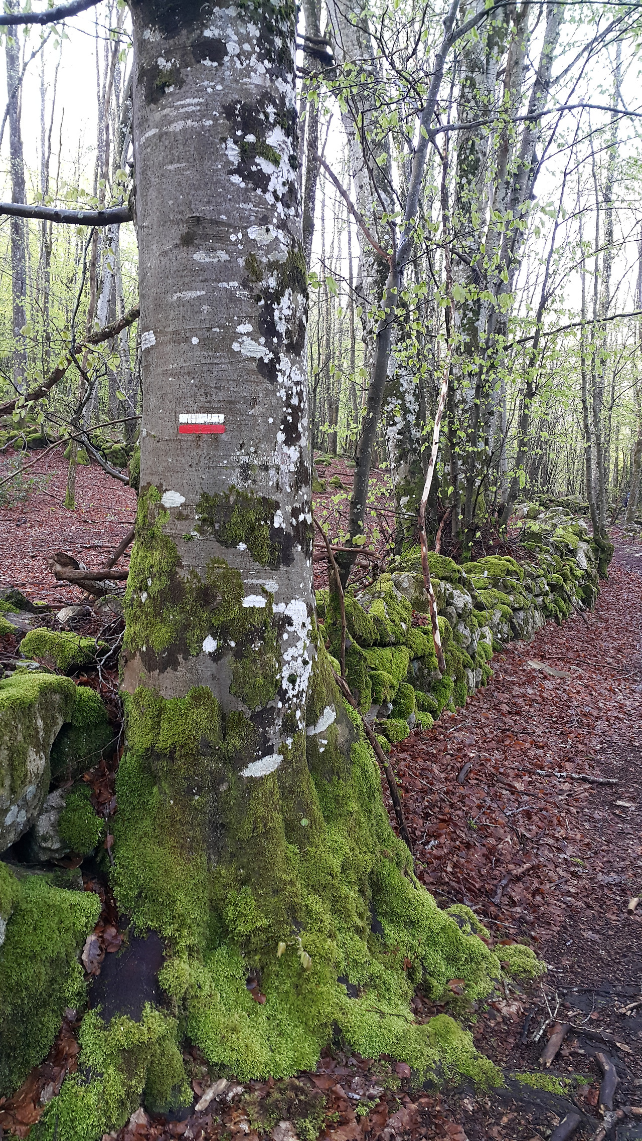두 줄 표식은 주로 돌이나 나무 기둥 위에 새겨져 있었다. 어쩐지.... 스페인 순례길에서는 조개모양 화살표로 길바닥, 벽, 이정표 등 빈번하게, 다양한 방법으로 길을 안내해 줘서 절대 길 잃을 염려는 없다는 말을 들었다. 그리고 스페인은 워낙 순례객이 많다 보니 순례객 뒤꽁무니만 잘 쫓아가면된다고도 했다.