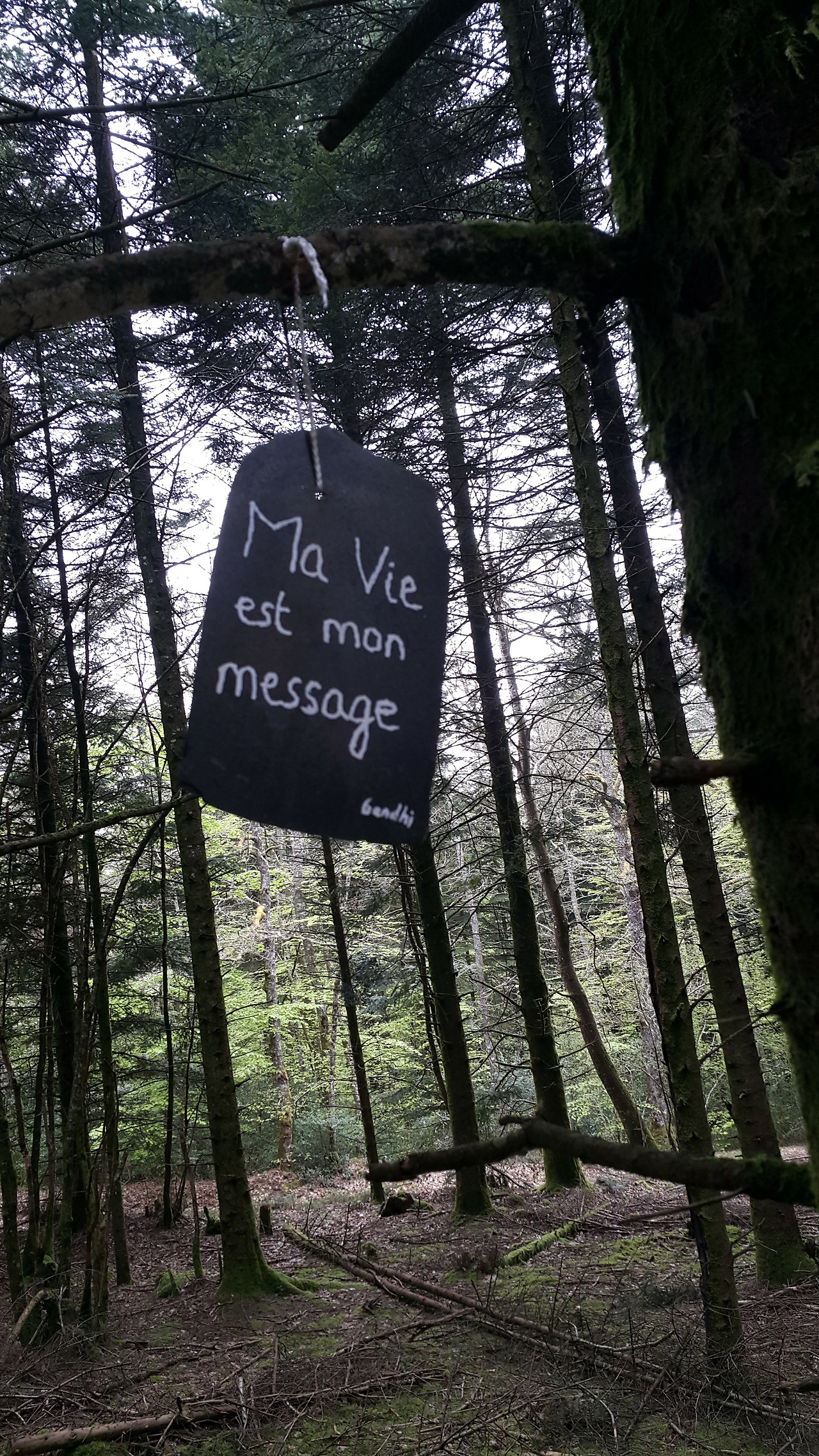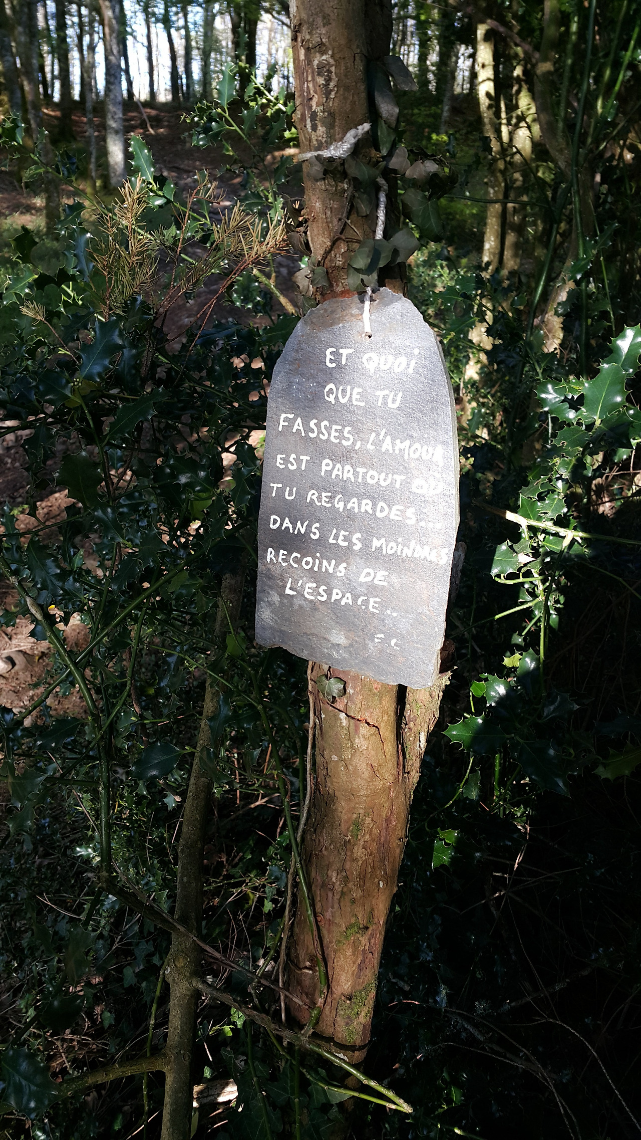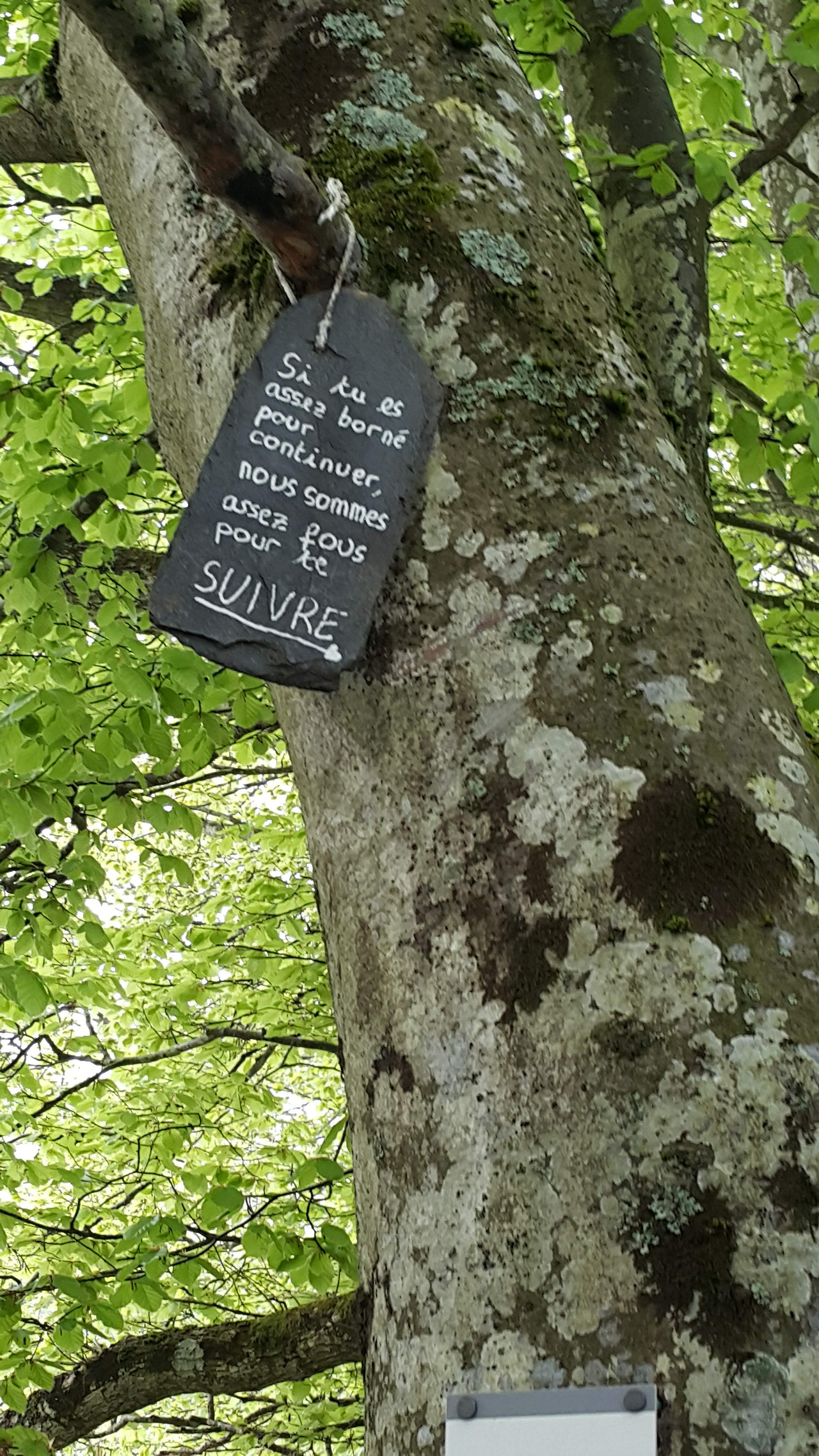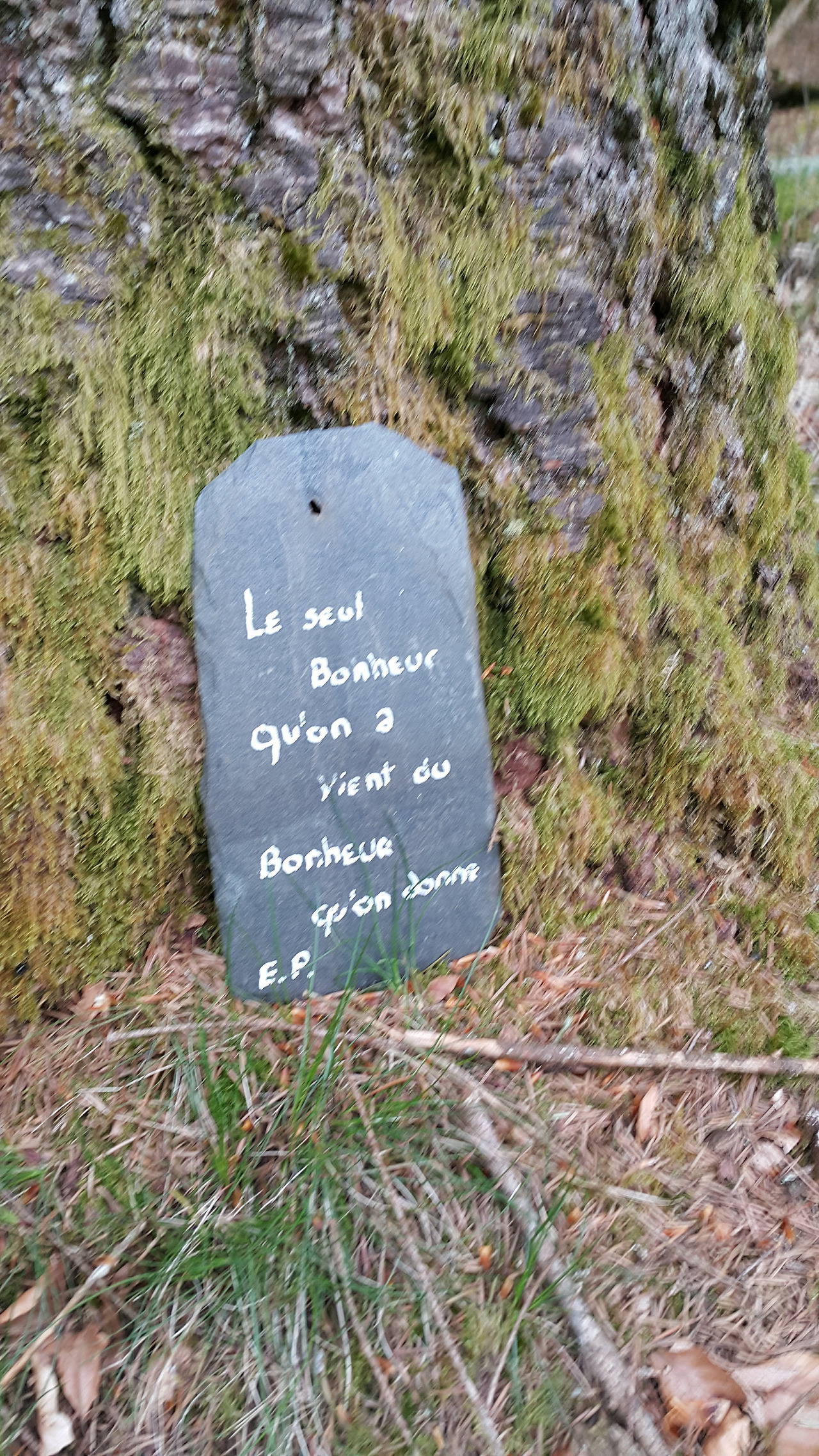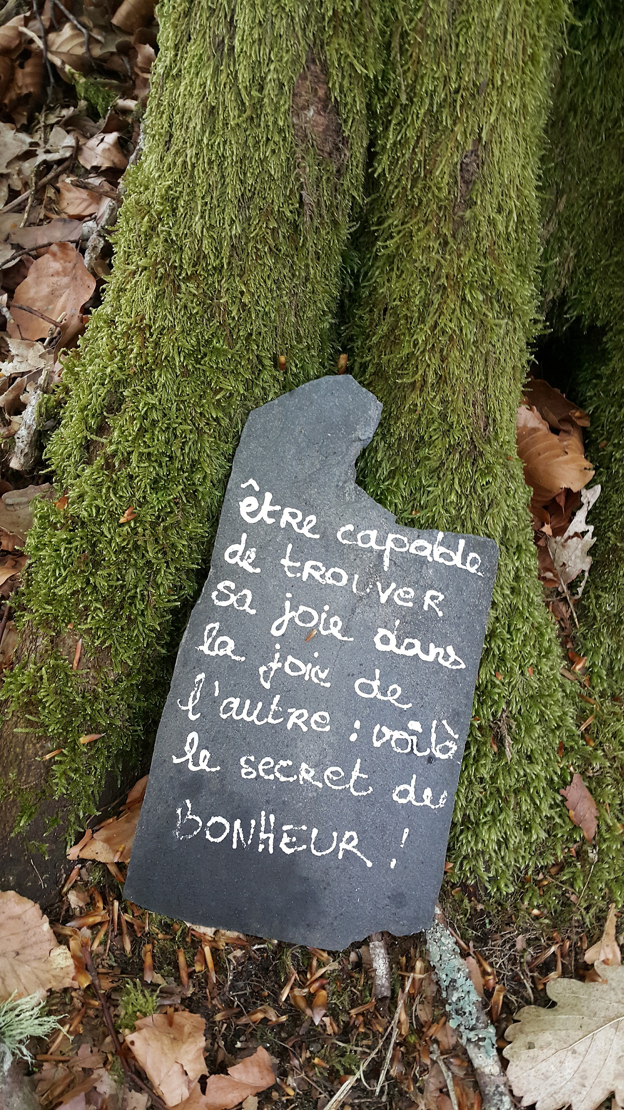 그런데 팻말이 하나가 아니었다. 누군가 숨겨 놓은 메시지들이 숲 속 곳곳에서 툭툭 계속 말을 건네 왔다. 근데 어쩌지? 난감하다. 나도 답을 해주고 싶은데 모조리 프랑스어다. 난 불어 까막눈.