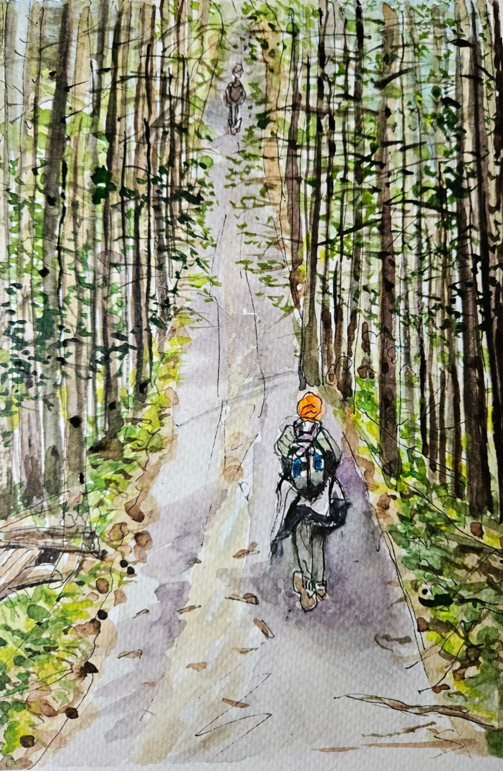 순례 초반 세차게 퍼붓는 빗속을 걸으며