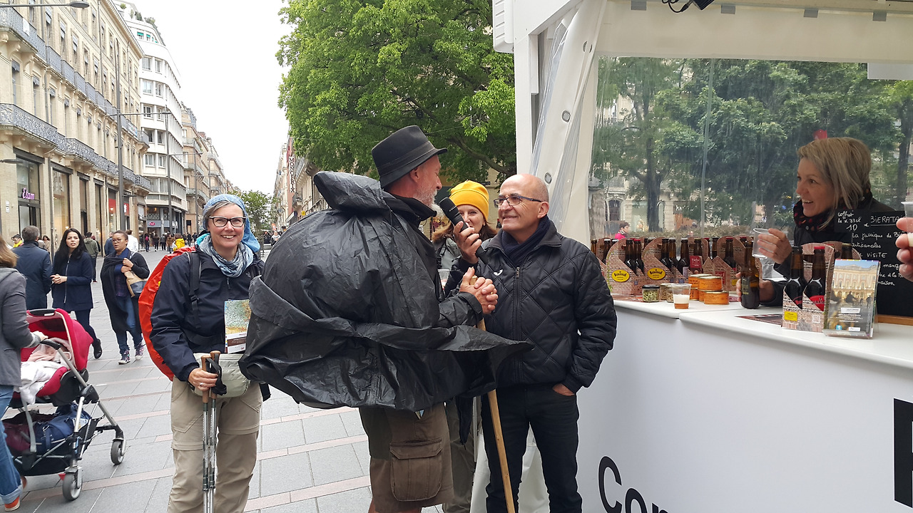 마침 광장에 방송을 타는 시음회 같은 게 있었다. 마이크를 든 진행자들도 스테판 메종 아저씨의 비범함을 알아보시고 인터뷰를 요청하신다.